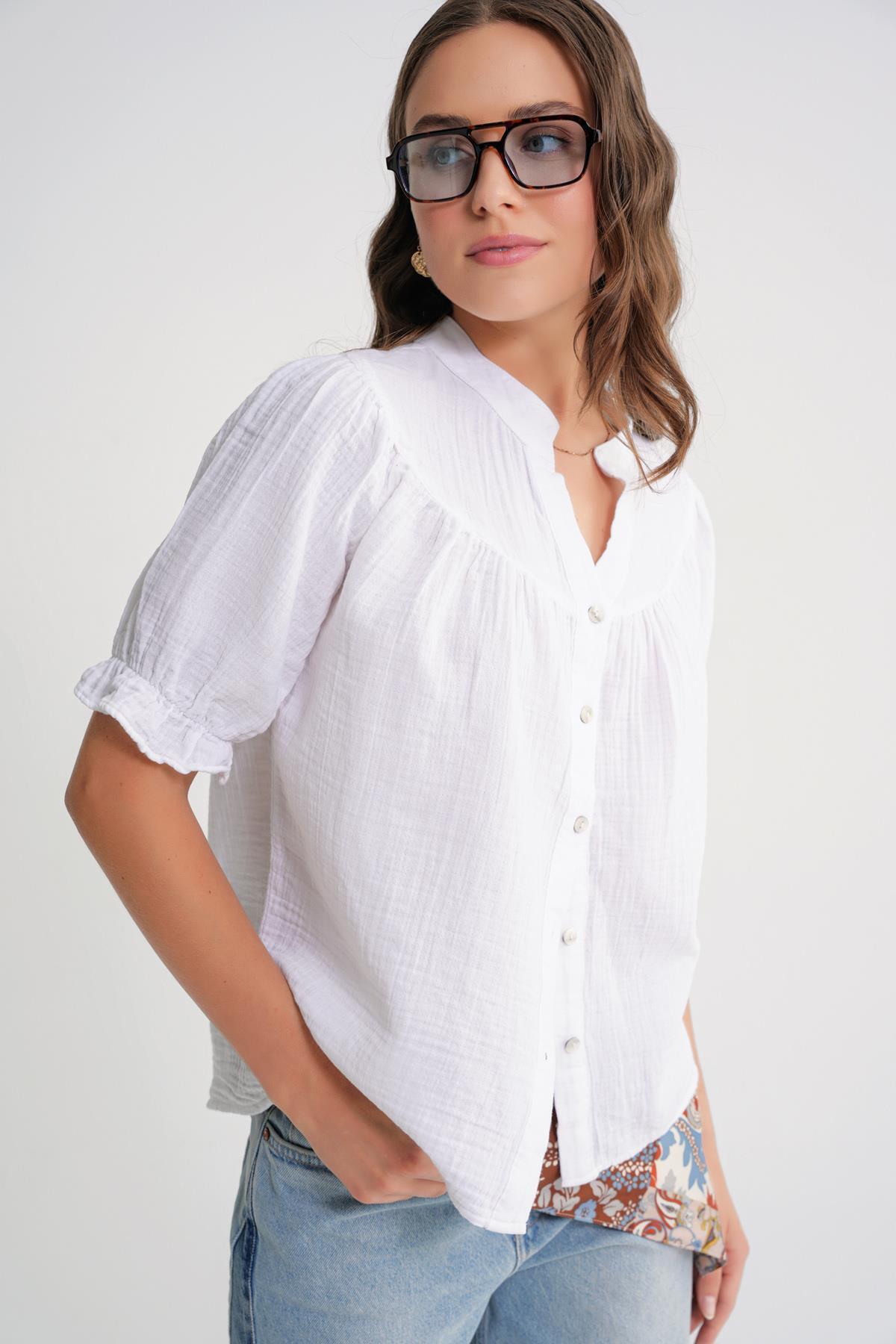 4725 Kadın Büzgü Robalı Kolu Fırfırlı Müslin Gömlek Beyaz 4725 Kadın Büzgü Robalı Kolu Fırfırlı Müslin Gömlek Beyaz Y25GML4725 L