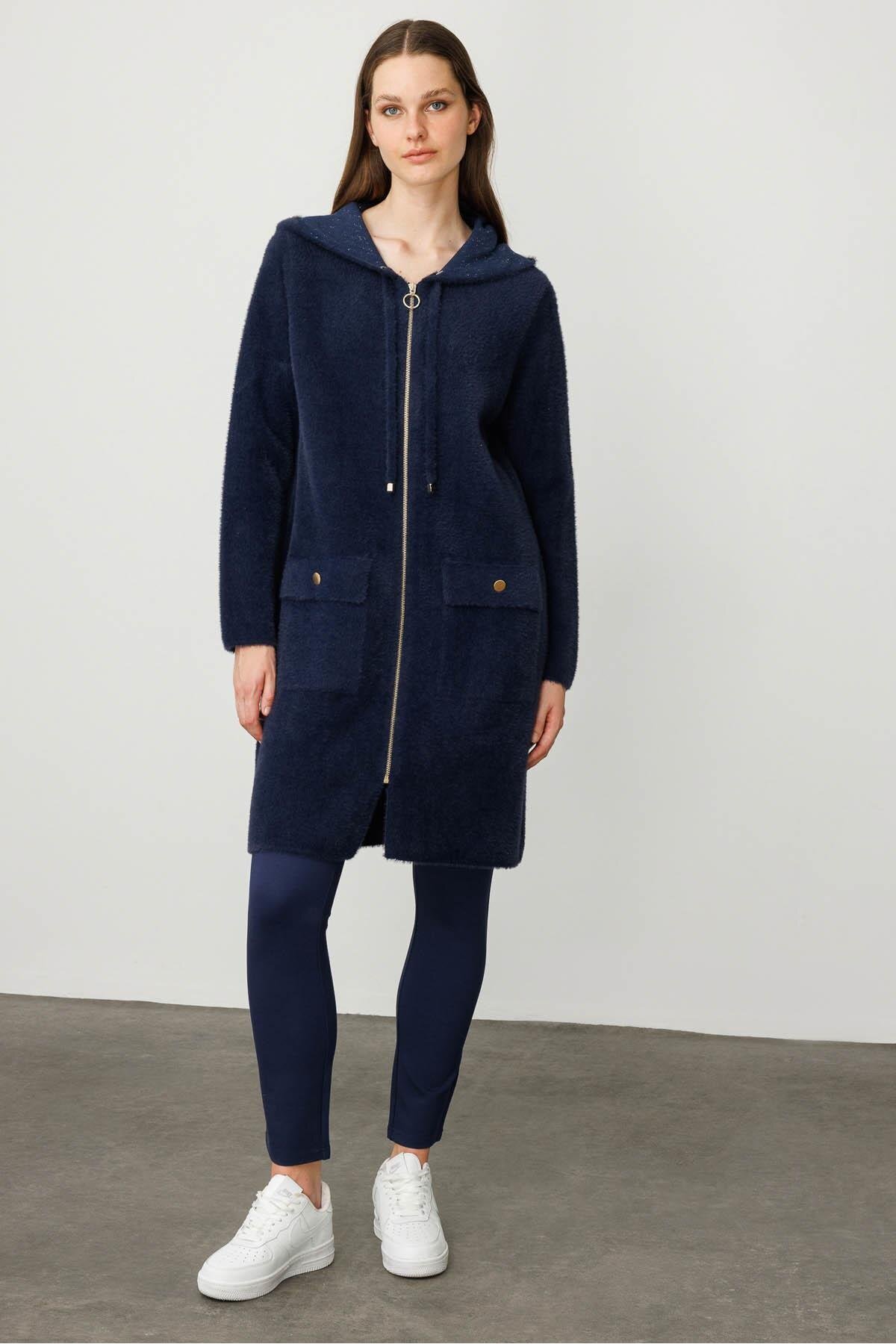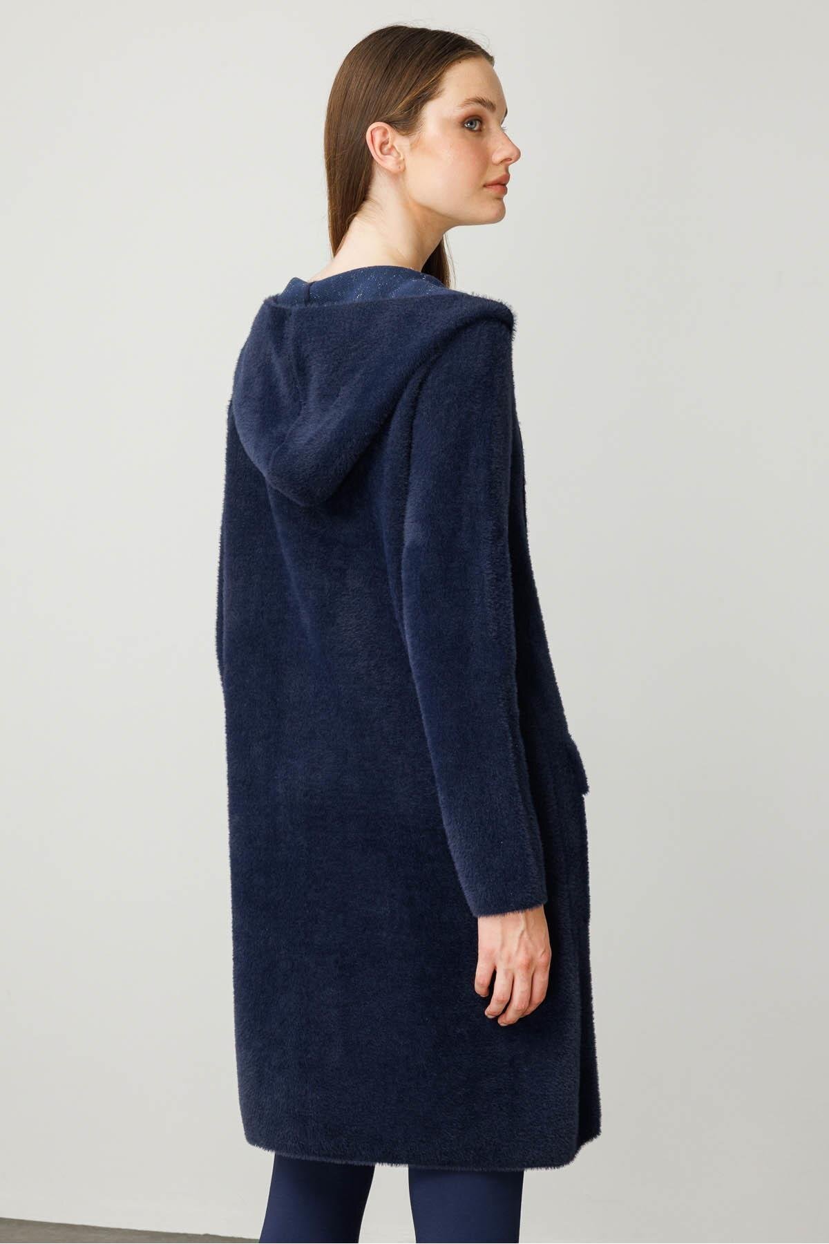 Kadın Kapüşonlu Cebi Metal Düğmeli Afrodit Triko Kaban Lacivert Kadın Kapüşonlu Cebi Metal Düğmeli Afrodit Triko Kaban Lacivert 25011 XL