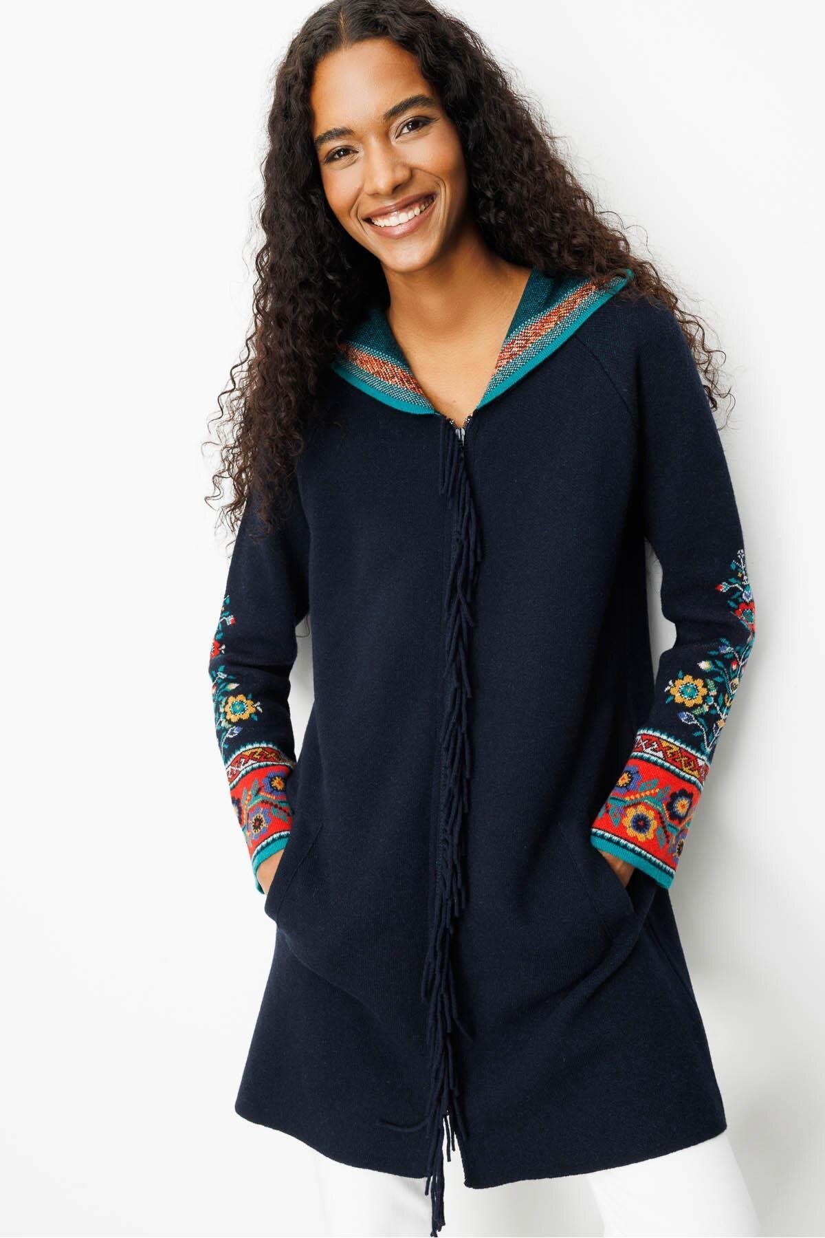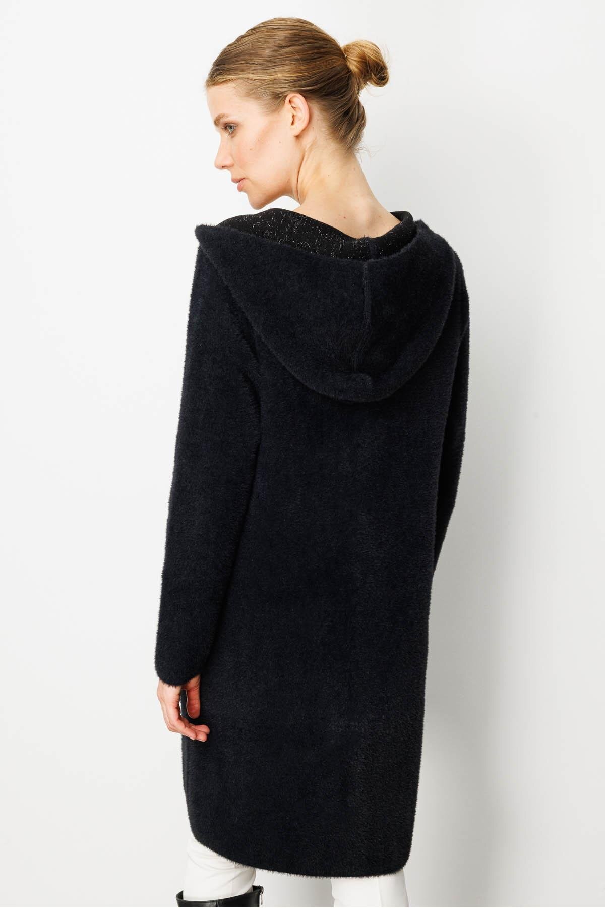Kadın Kapüşonlu Cebi Metal Düğmeli Afrodit Triko Kaban Siyah Kadın Kapüşonlu Cebi Metal Düğmeli Afrodit Triko Kaban Siyah 25011 XL