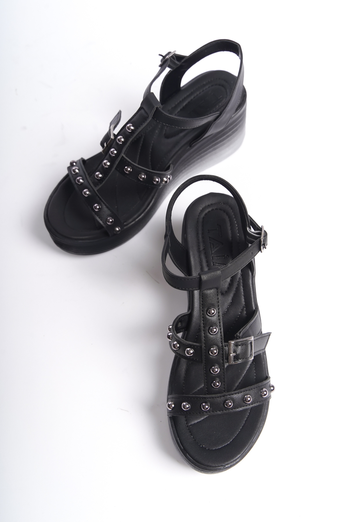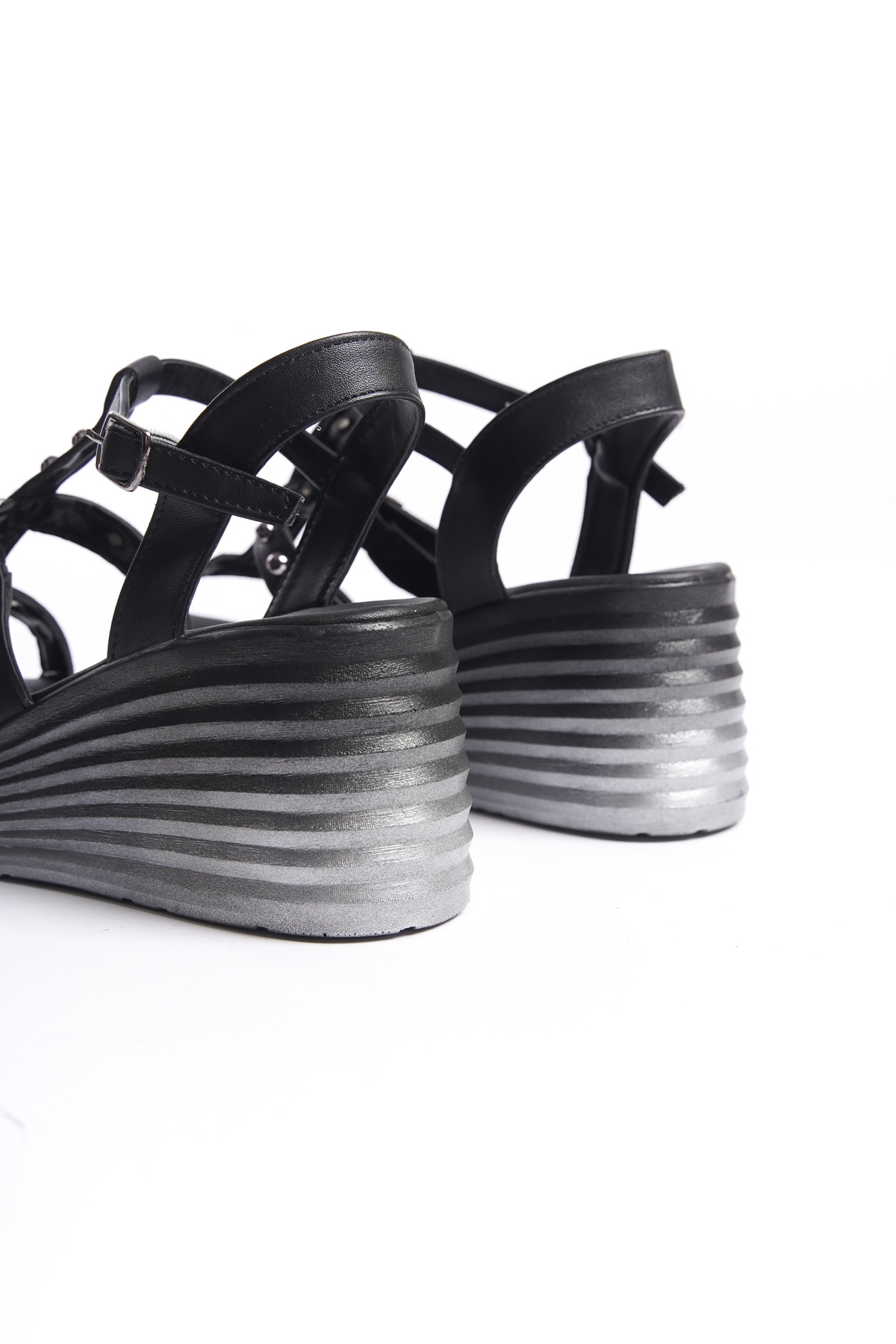 Kadın Siyah Tokalı Ortopedik Taban Günlük Sandalet - Kadın Siyah Tokalı Ortopedik Taban Günlük Sandalet - çift toka sandalet 40