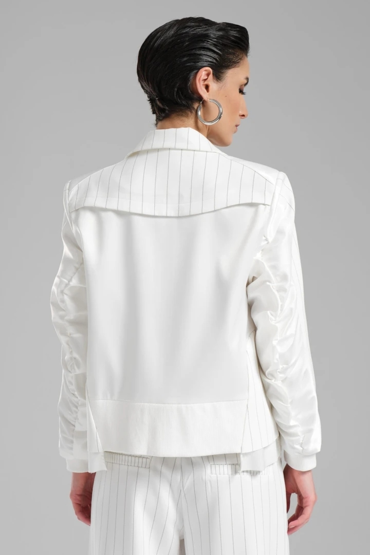 Kadın Saten Kumaş ve Çizgili Kumaş Detaylı Tasarım Blazer Ceket Kadın Saten Kumaş ve Çizgili Kumaş Detaylı Tasarım Blazer Ceket TW3-1139 L
