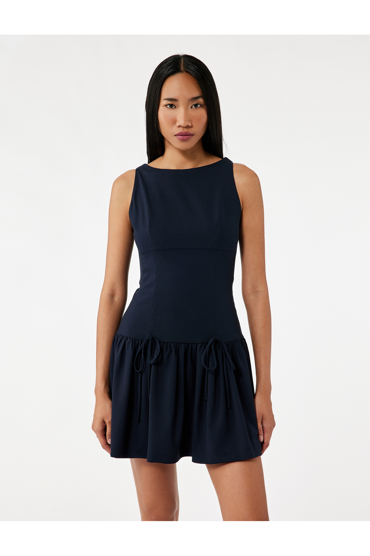 Kolsuz Bisiklet Yaka Slim Fit Fiyonklu Mini Elbise Kolsuz Bisiklet Yaka Slim Fit Fiyonklu Mini Elbise 6WAK80014PW 44