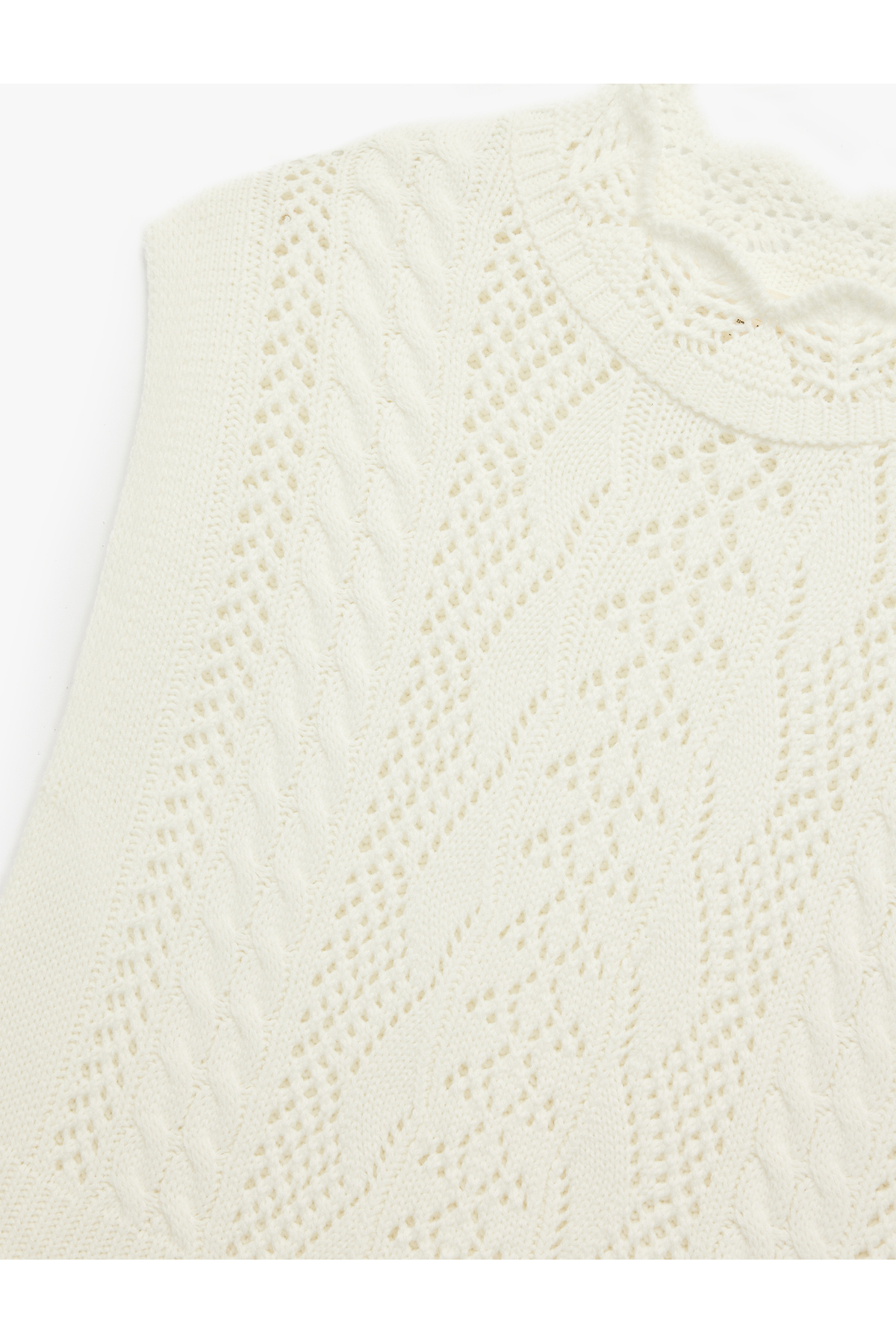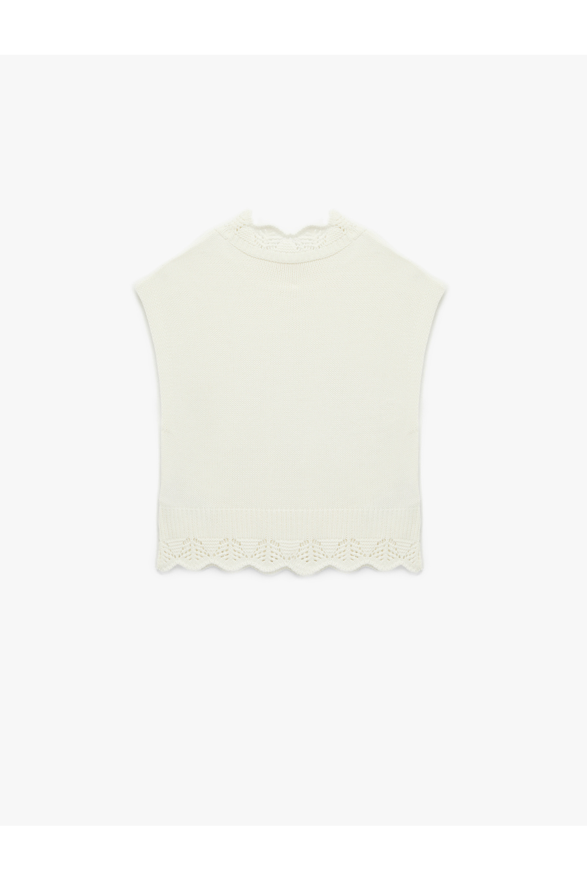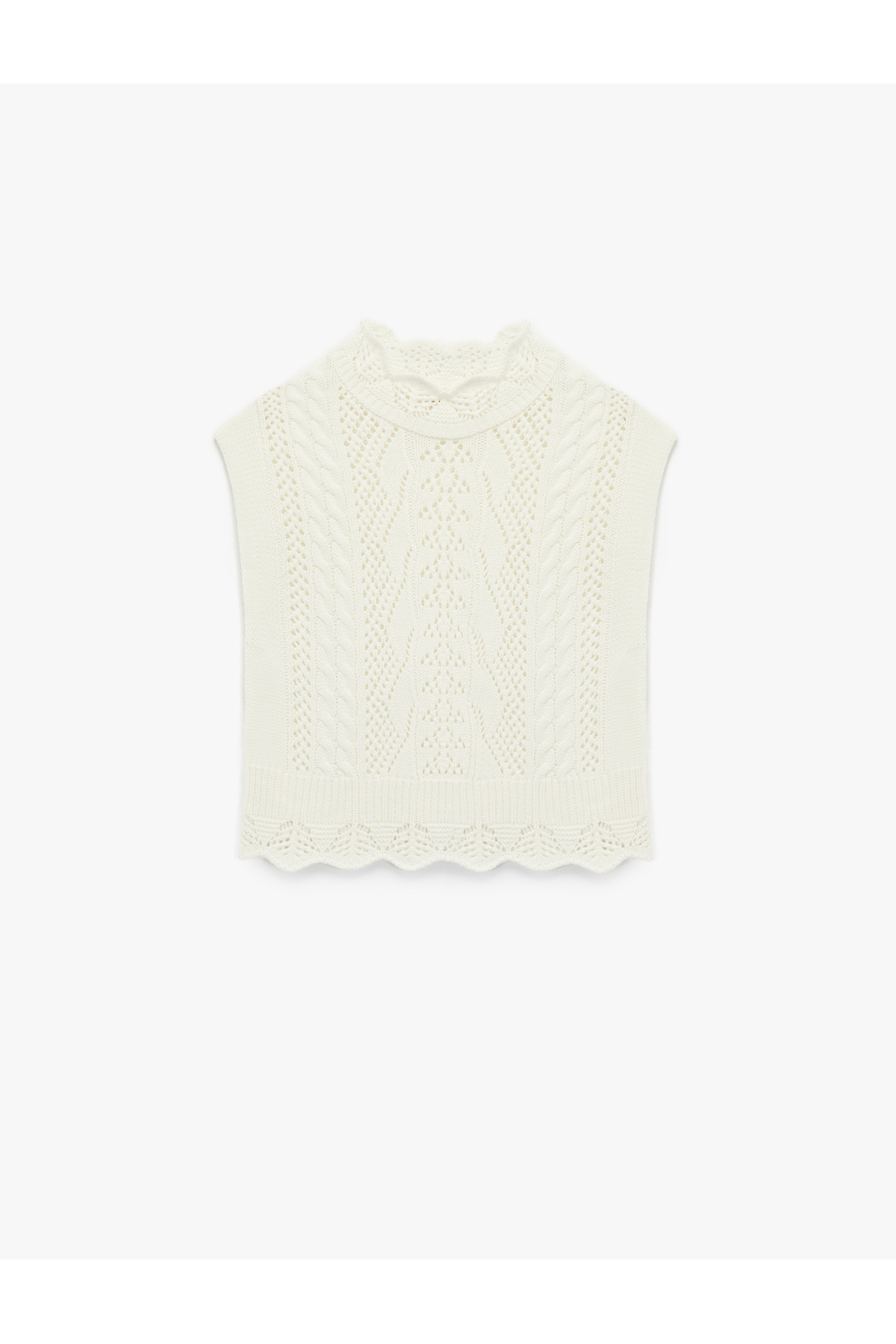 Dik Yaka Kolsuz Ajurlu Örgü Süveter Dik Yaka Kolsuz Ajurlu Örgü Süveter 6WAK20007HT XL