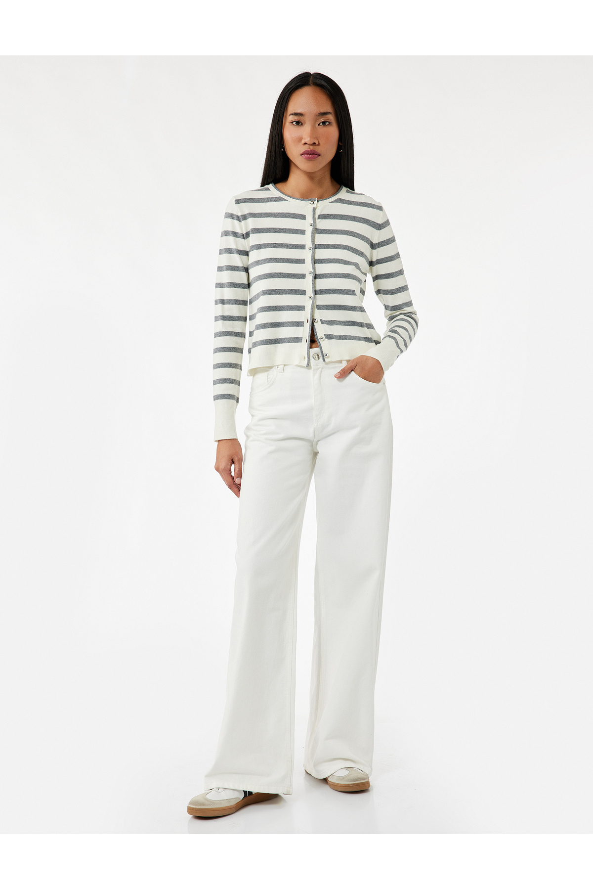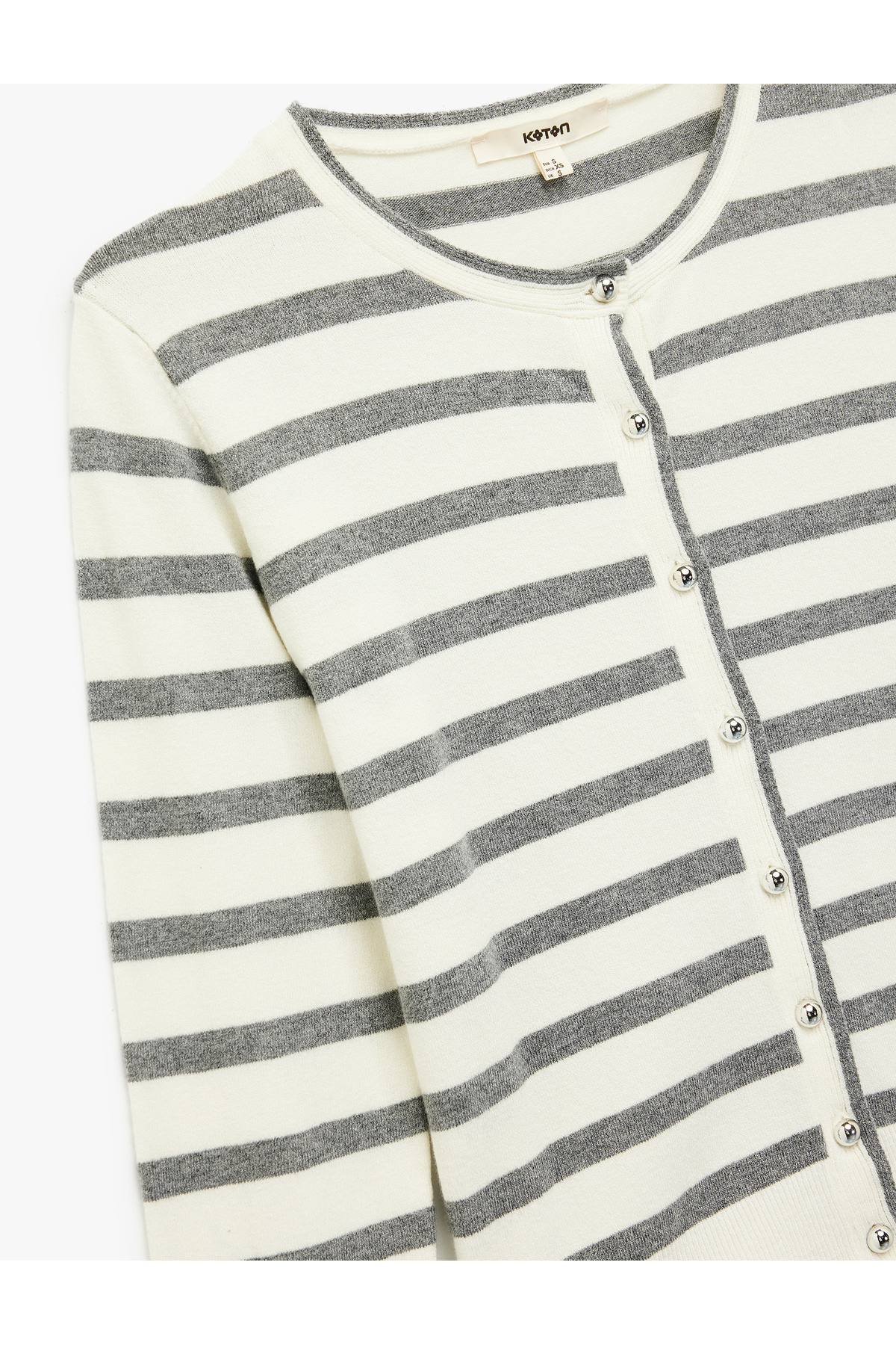 Uzun Kollu Bisiklet Yaka Çizgili Triko Hırka Uzun Kollu Bisiklet Yaka Çizgili Triko Hırka 6WAK90046HT XL