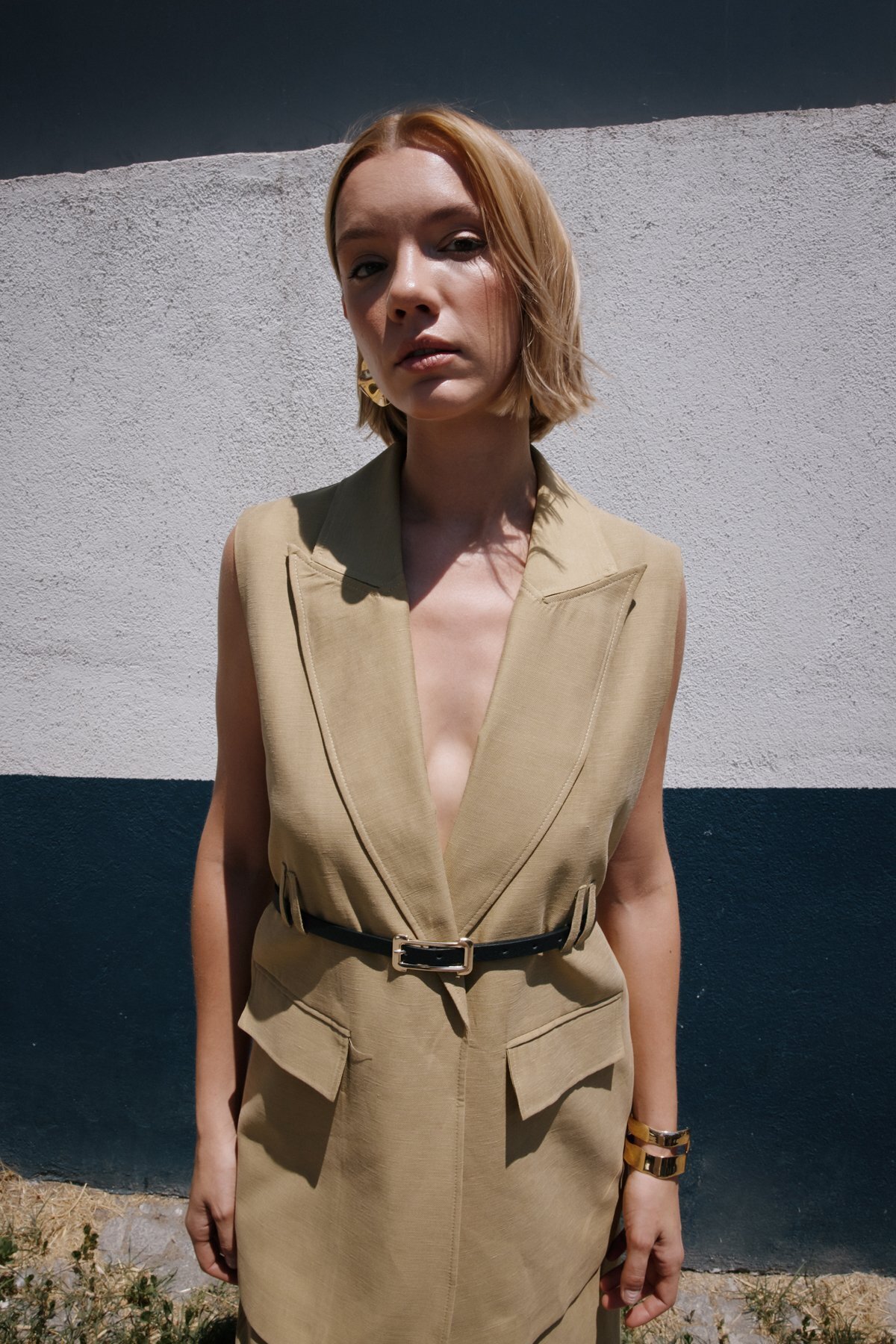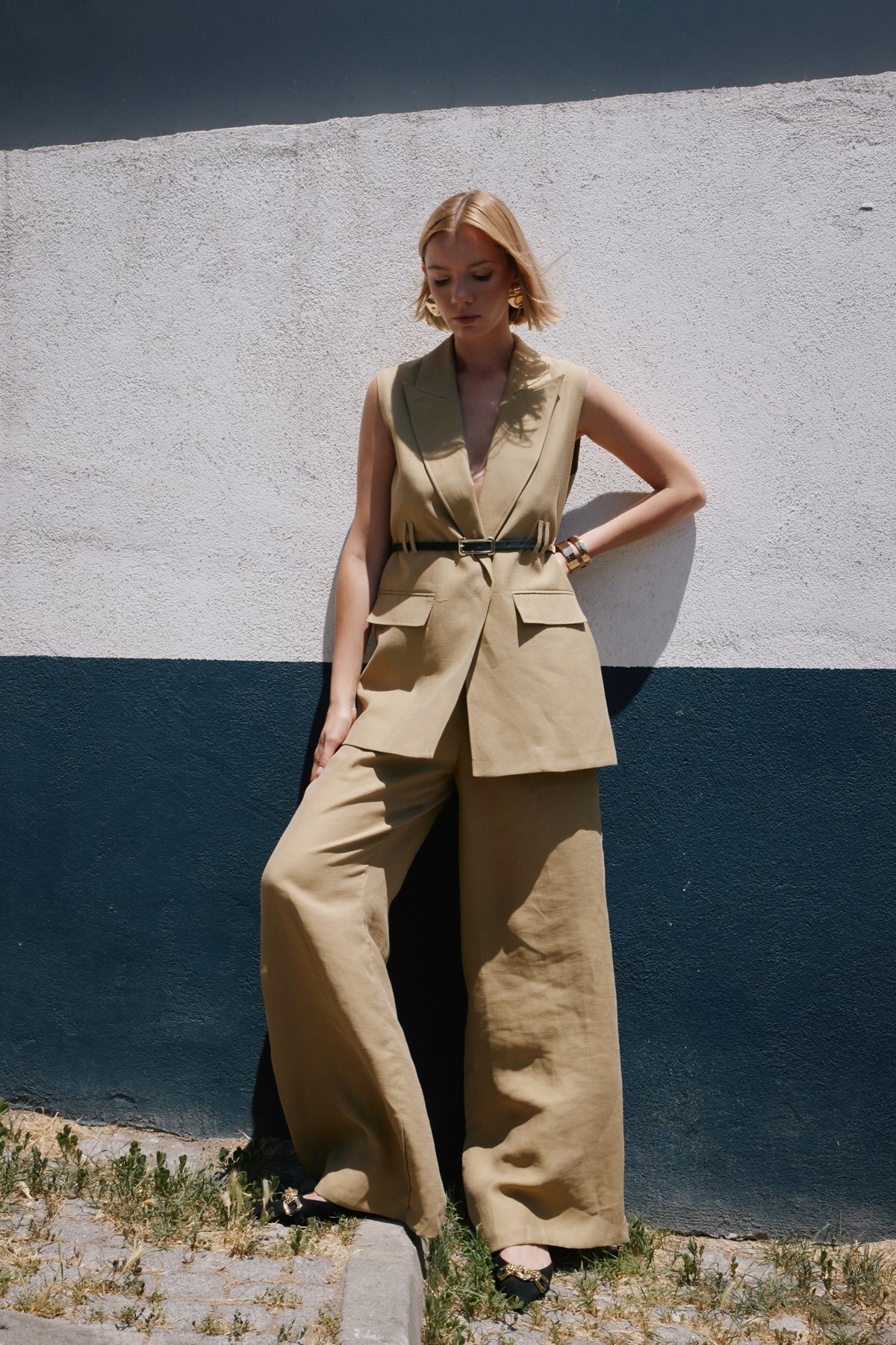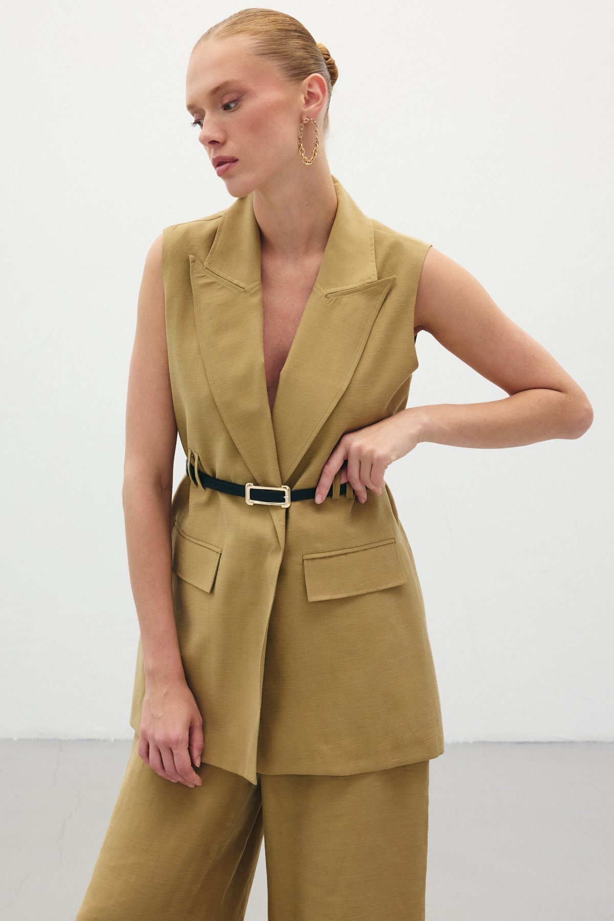 Kemerli Keten Yelek - Haki Kemerli Keten Yelek - Haki STN139KYE1816 40