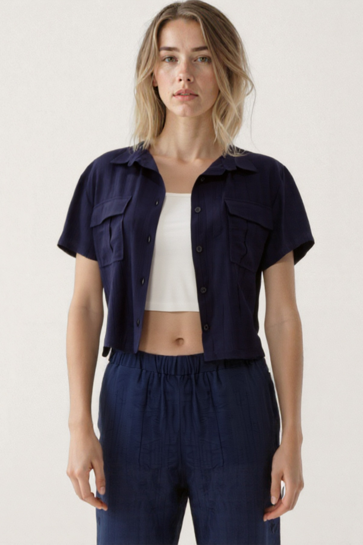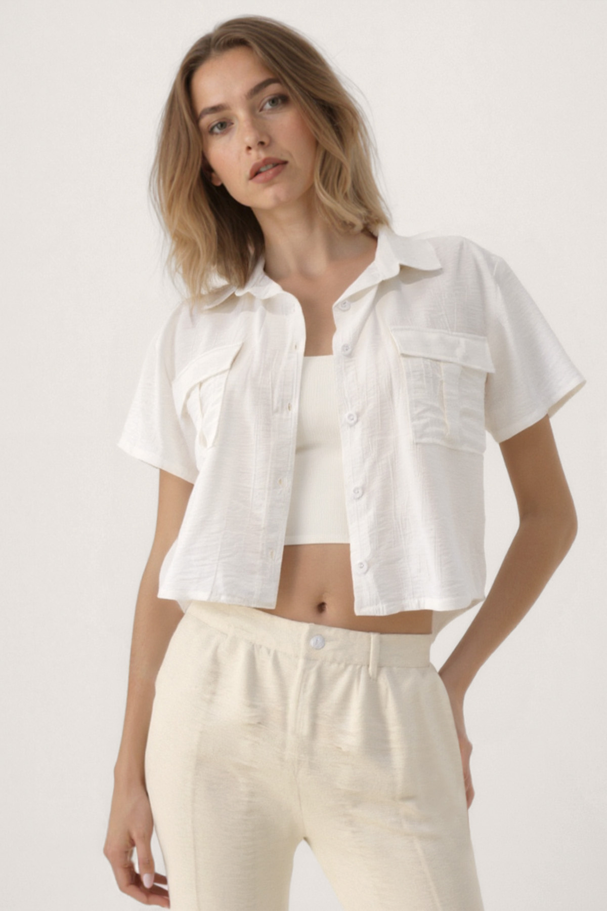 Kapak Cepli Krinkıl Kumaş Gömlek Kapak Cepli Krinkıl Kumaş Gömlek 25-310 XL