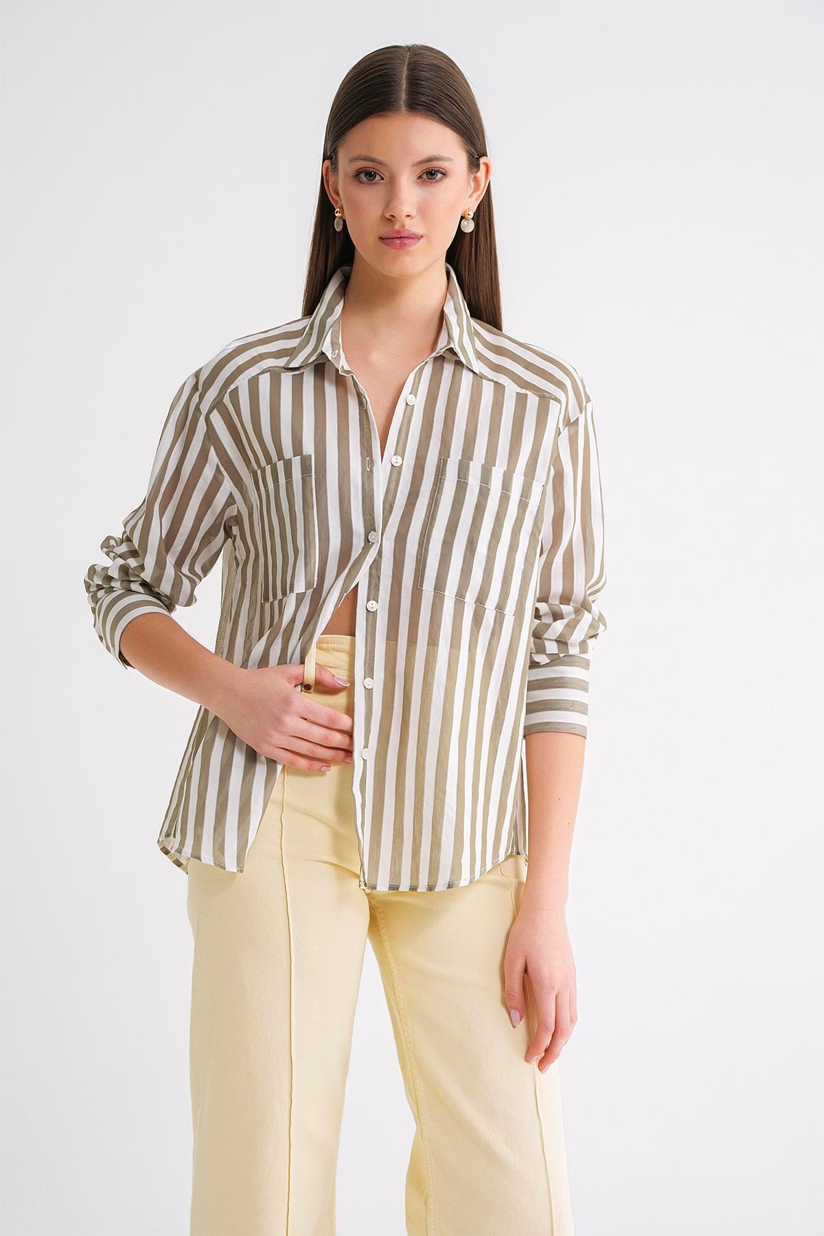 Kapak Cepli Krinkıl Kumaş Gömlek Kapak Cepli Krinkıl Kumaş Gömlek 25-310 XL