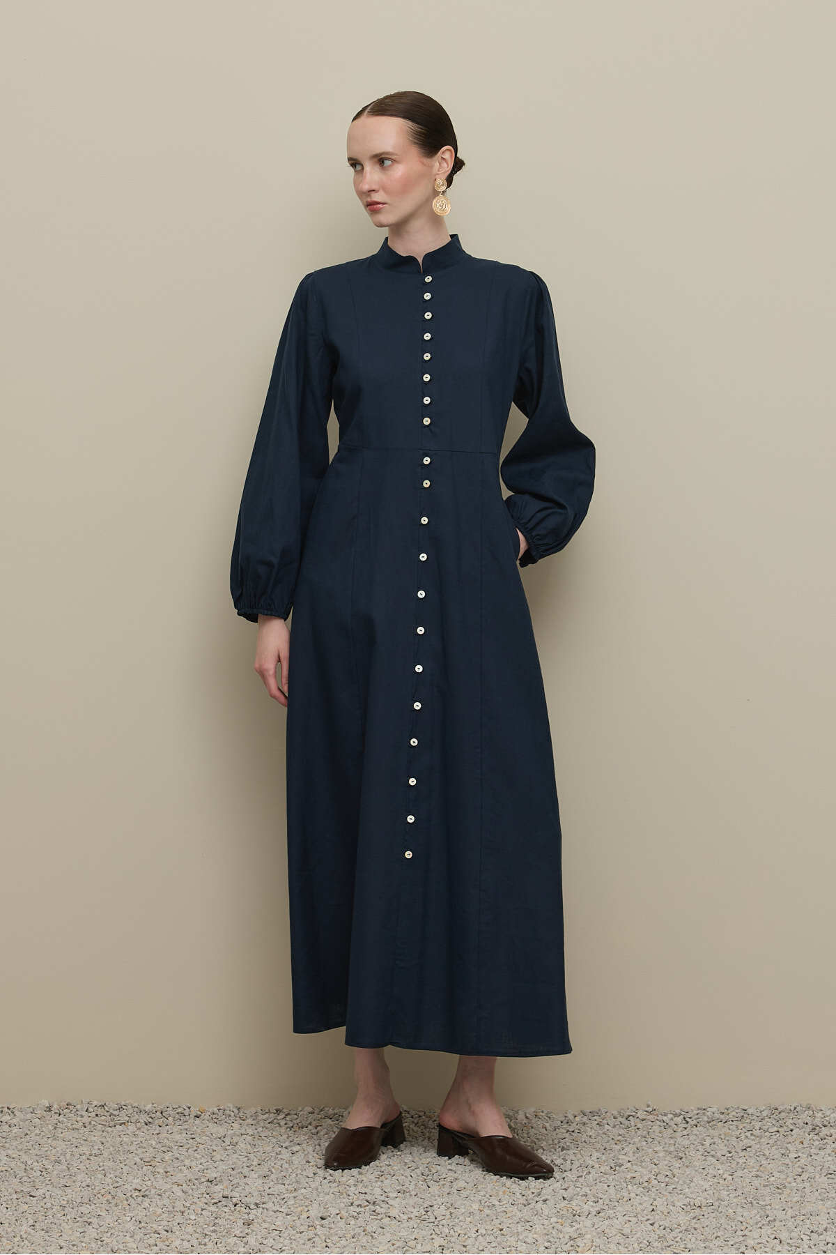 Britli Lyocell Keten Elbise Lacivert Britli Lyocell Keten Elbise Lacivert FHR25IY320011315 36-38