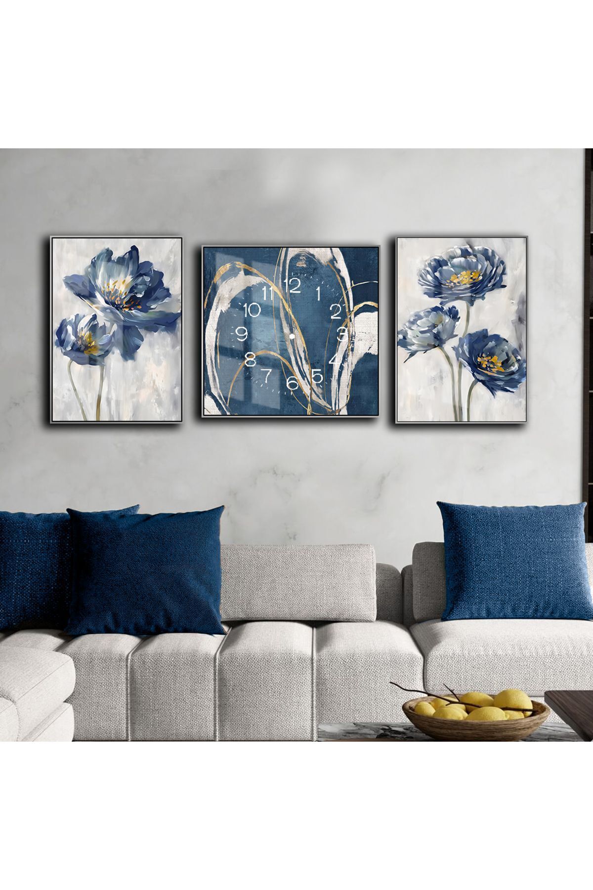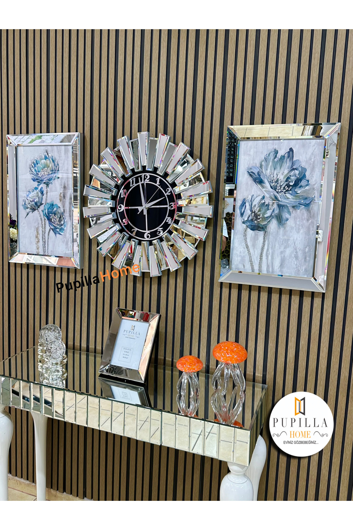 Aynalı Mavi Çiçek Tablo ve Güneş Saat Set Aynalı Mavi Çiçek Tablo ve Güneş Saat Set PH-1012 40 x 60