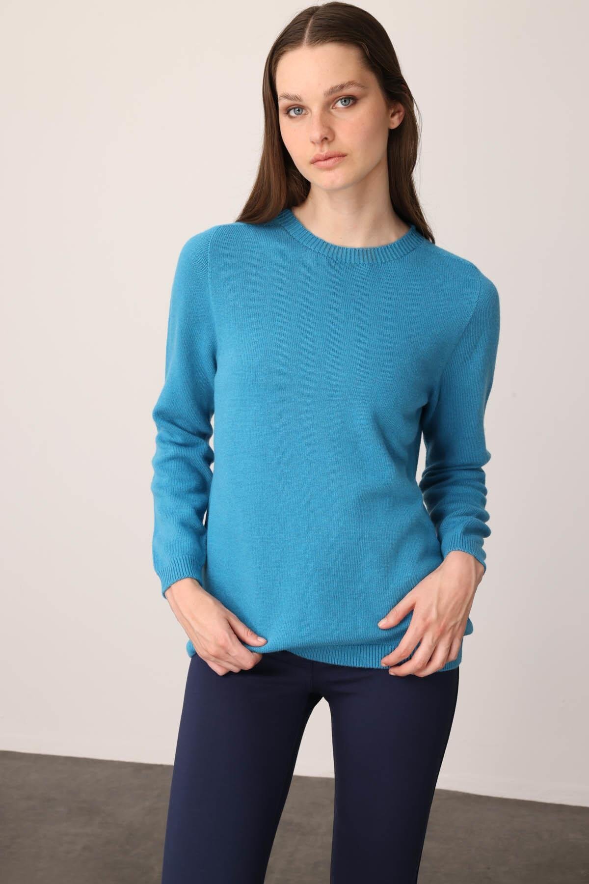 Kadın Sıfır Yaka Kaşmir Kazak Somon Kadın Sıfır Yaka Kaşmir Kazak Somon 25153 XL