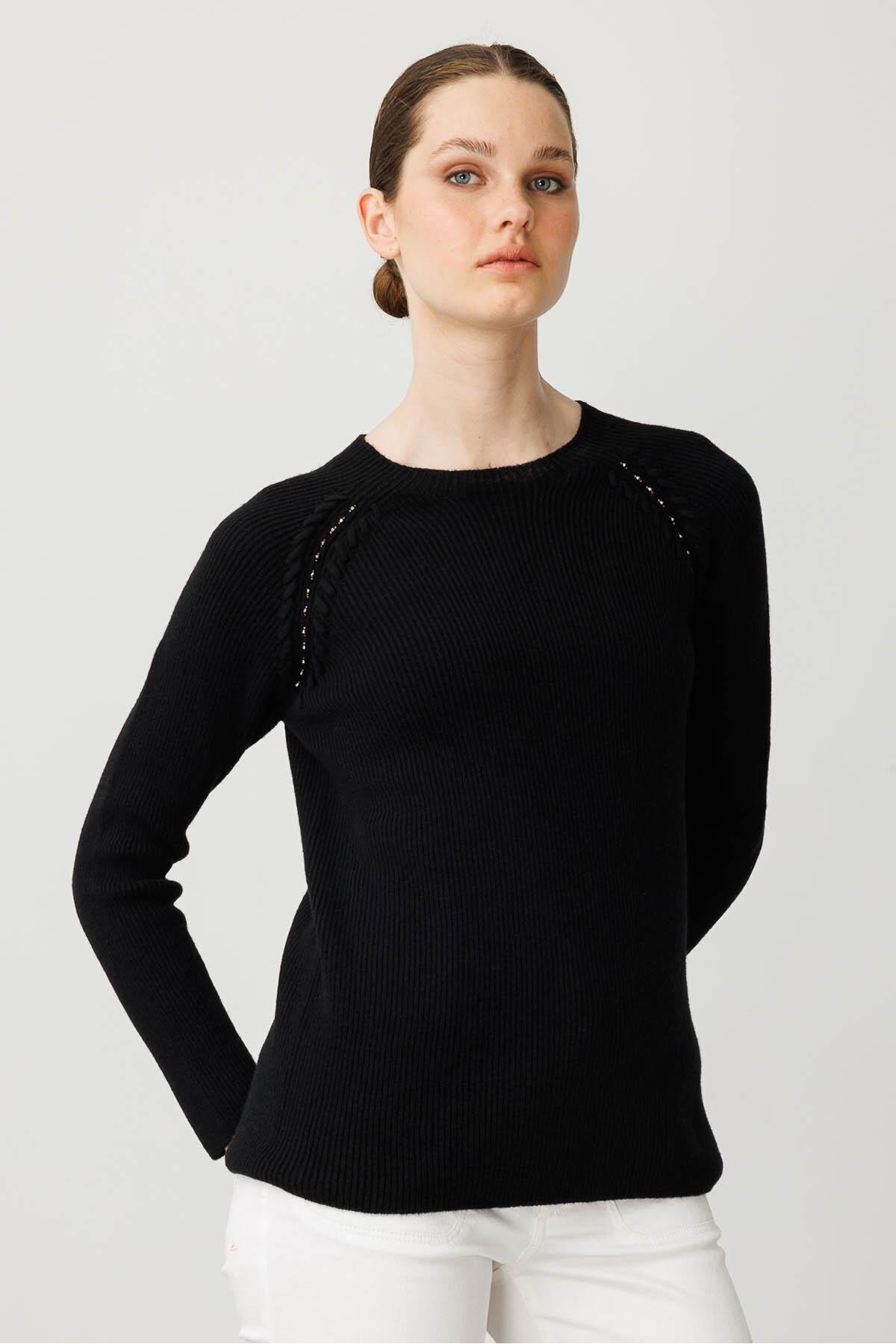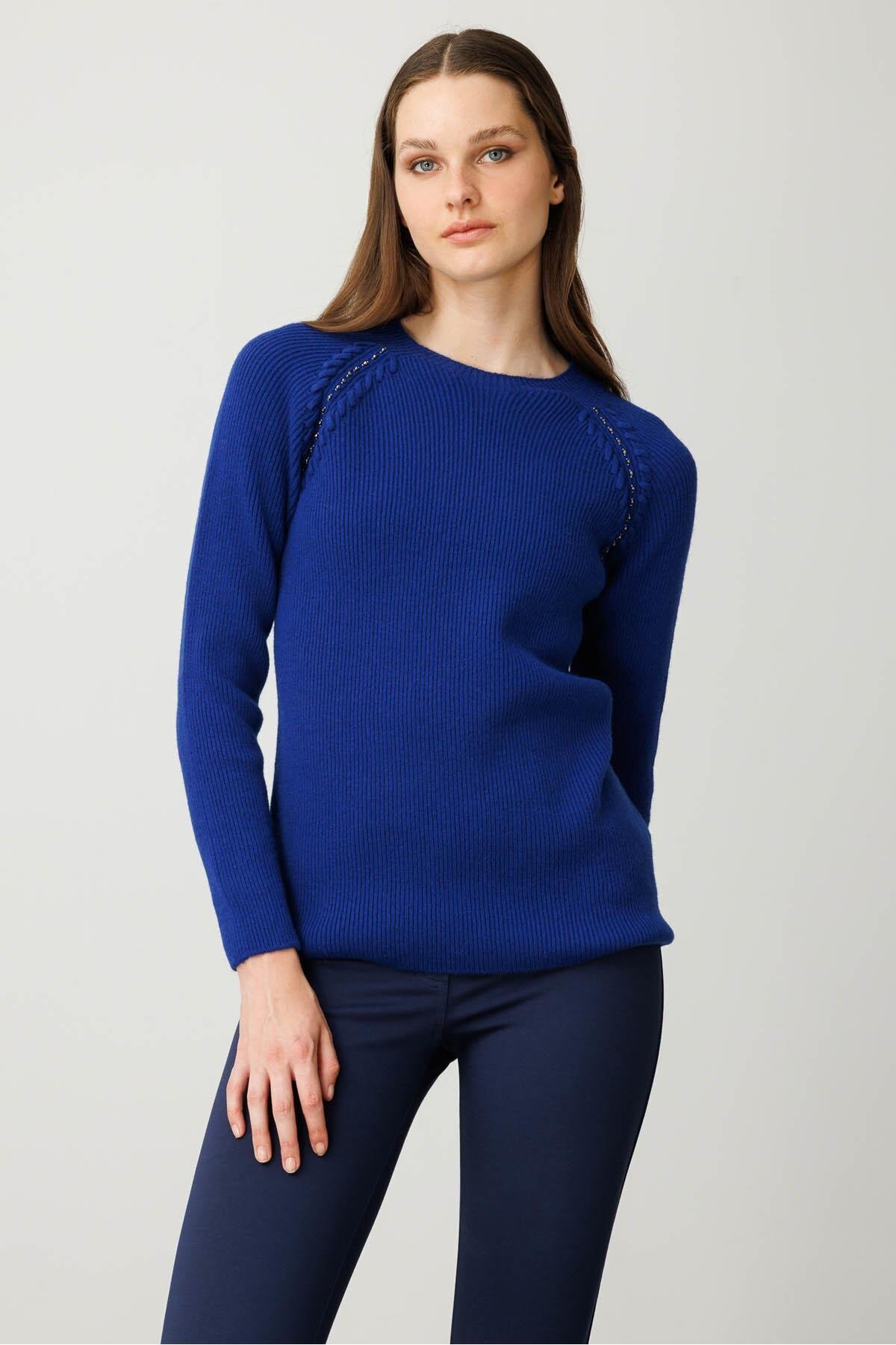 Kadın Sıfır Yaka Boncuklu Yün Kazak K.S.Mavi Kadın Sıfır Yaka Boncuklu Yün Kazak K.S.Mavi 25206 XL
