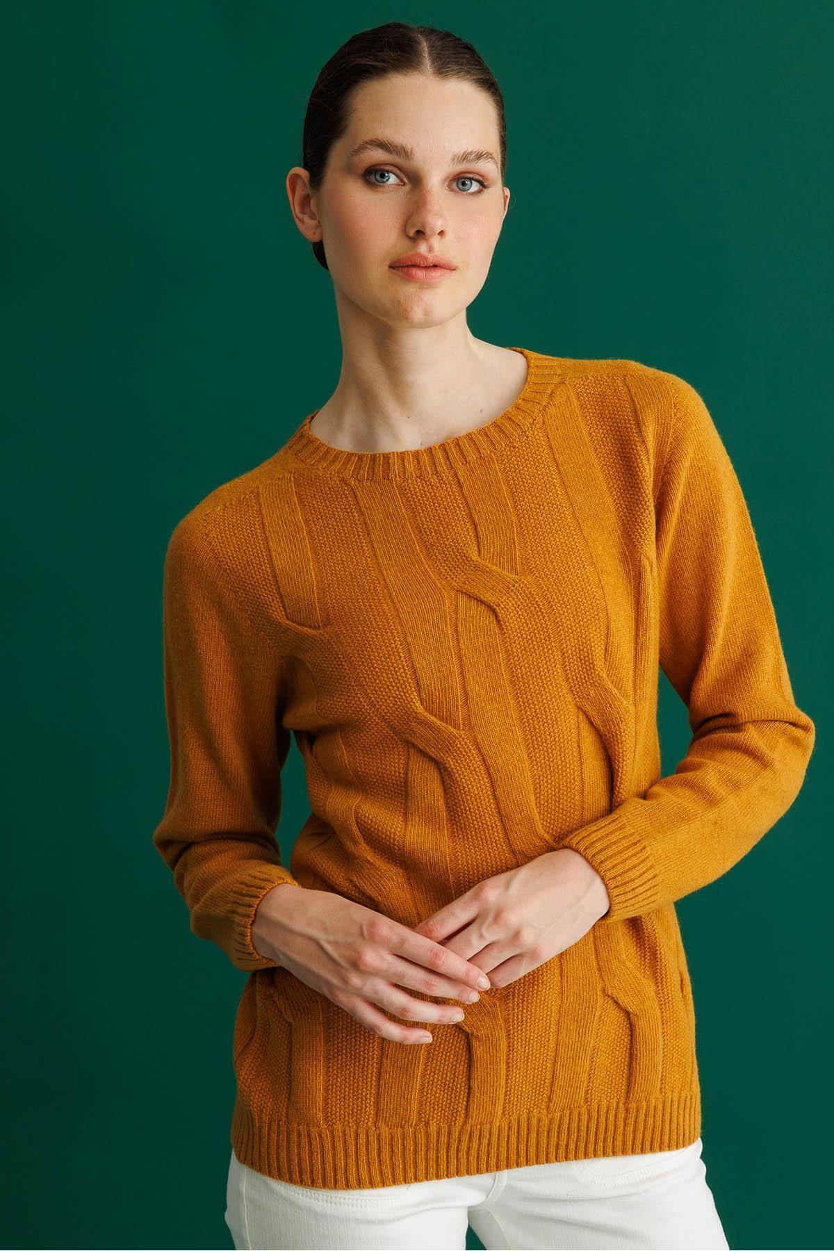 Kadın Sıfır Yaka Kalın Yürütmeli Yün Kazak Hardal Kadın Sıfır Yaka Kalın Yürütmeli Yün Kazak Hardal 25216 XL