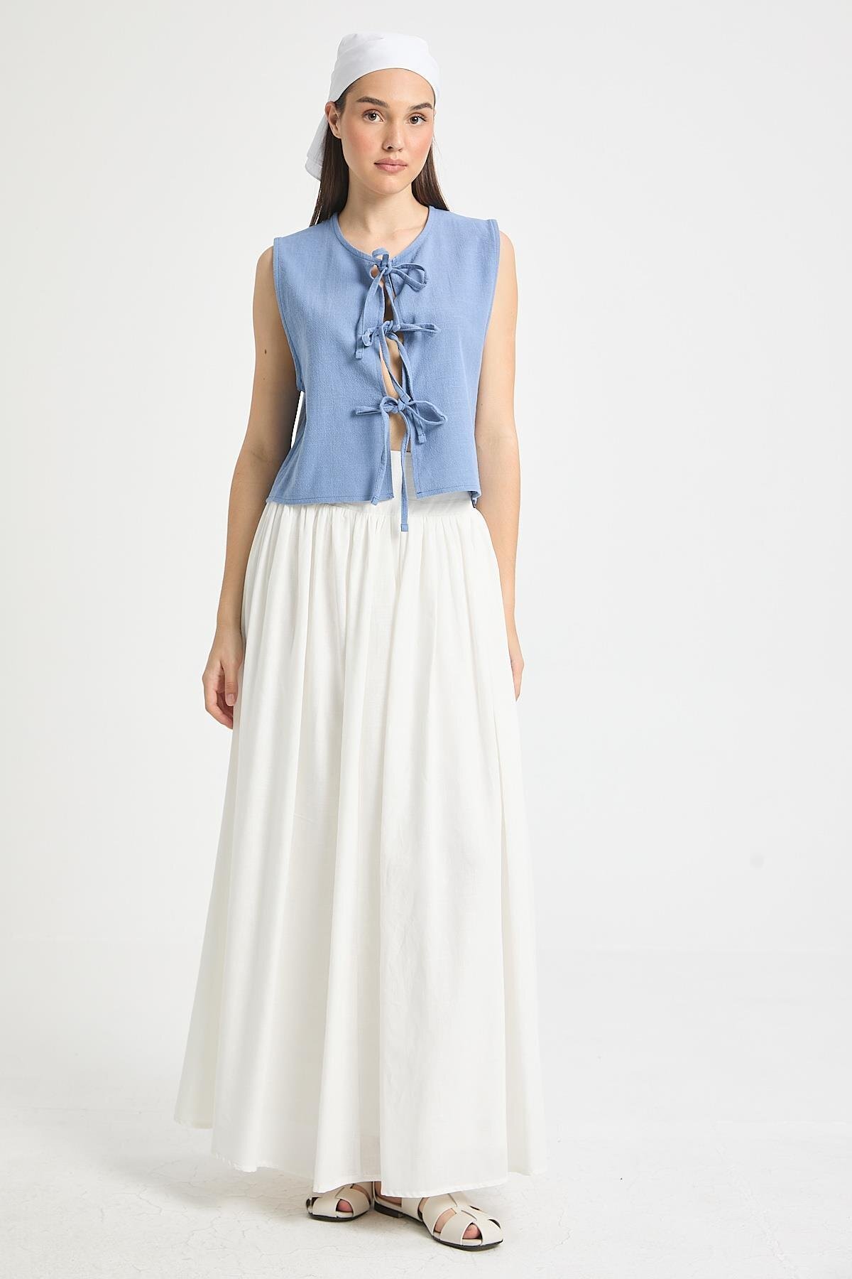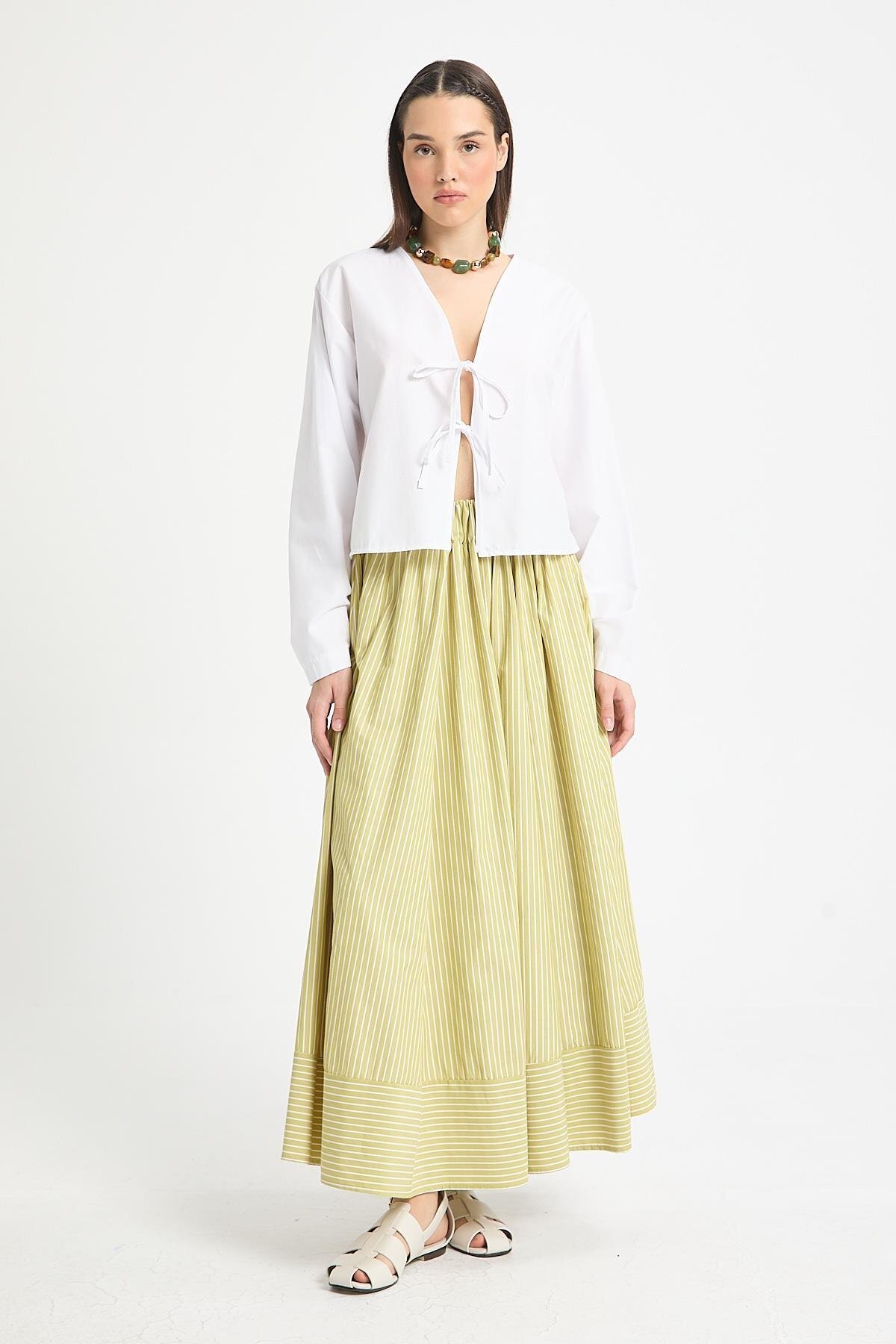 Mavi Çizgili Astarsız Poplin Beli Lastikli Uzun Etek 29277 Mavi Çizgili Astarsız Poplin Beli Lastikli Uzun Etek 29277 L