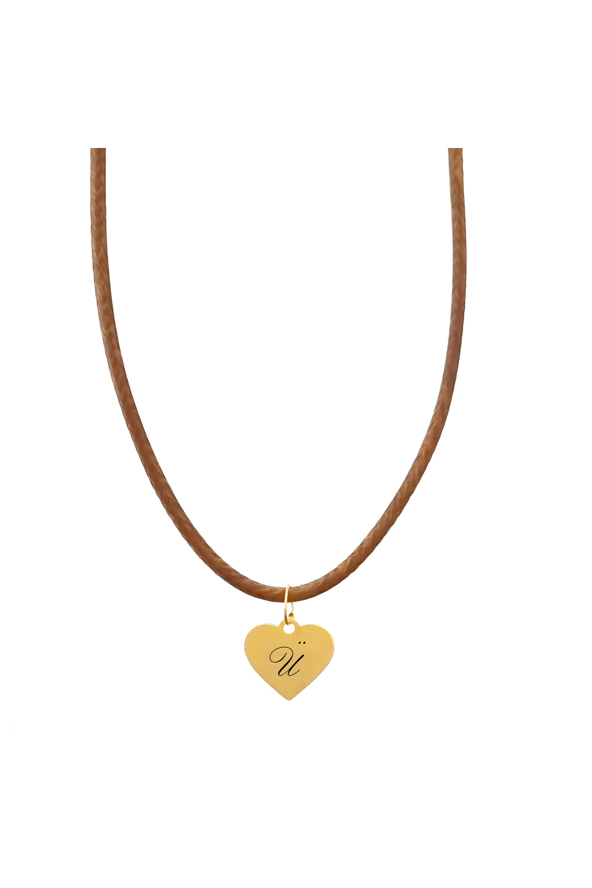 14 Ayar Altın Plakalı Ü Harfine Özel Kahverengi Derili Kalp Figürlü Hediyelik Kolye-550harf 14 Ayar Altın Plakalı Ü Harfine Özel Kahverengi Derili Kalp Figürlü Hediyelik Kolye-550harf 550-fekakk-lufka-MO2 43 cm