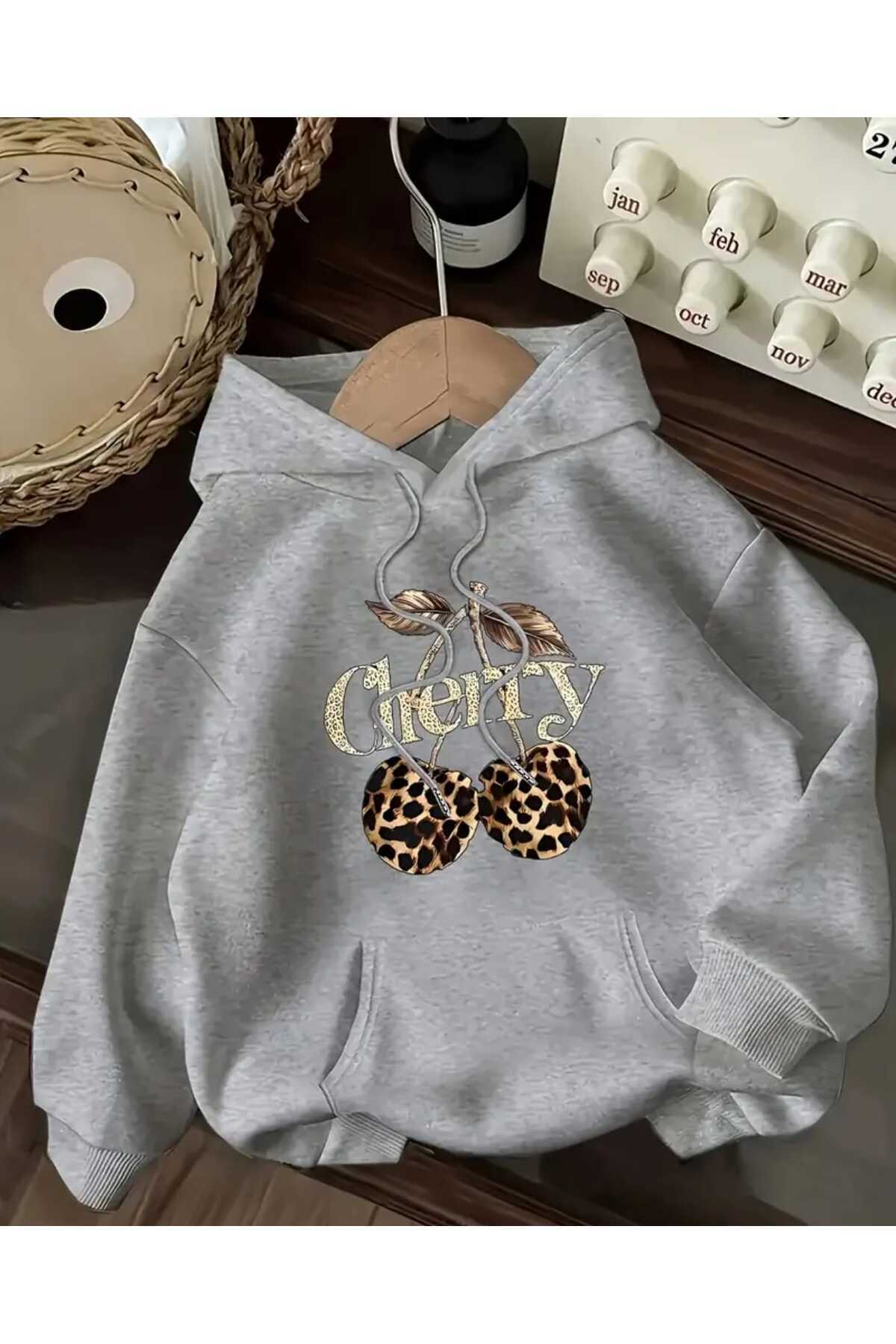Leopar Desenli Cherry Baskılı Kapüşonlu Cepli Pamuklu Bej Sweatshirt Leopar Desenli Cherry Baskılı Kapüşonlu Cepli Pamuklu Bej Sweatshirt B.s105 2XL