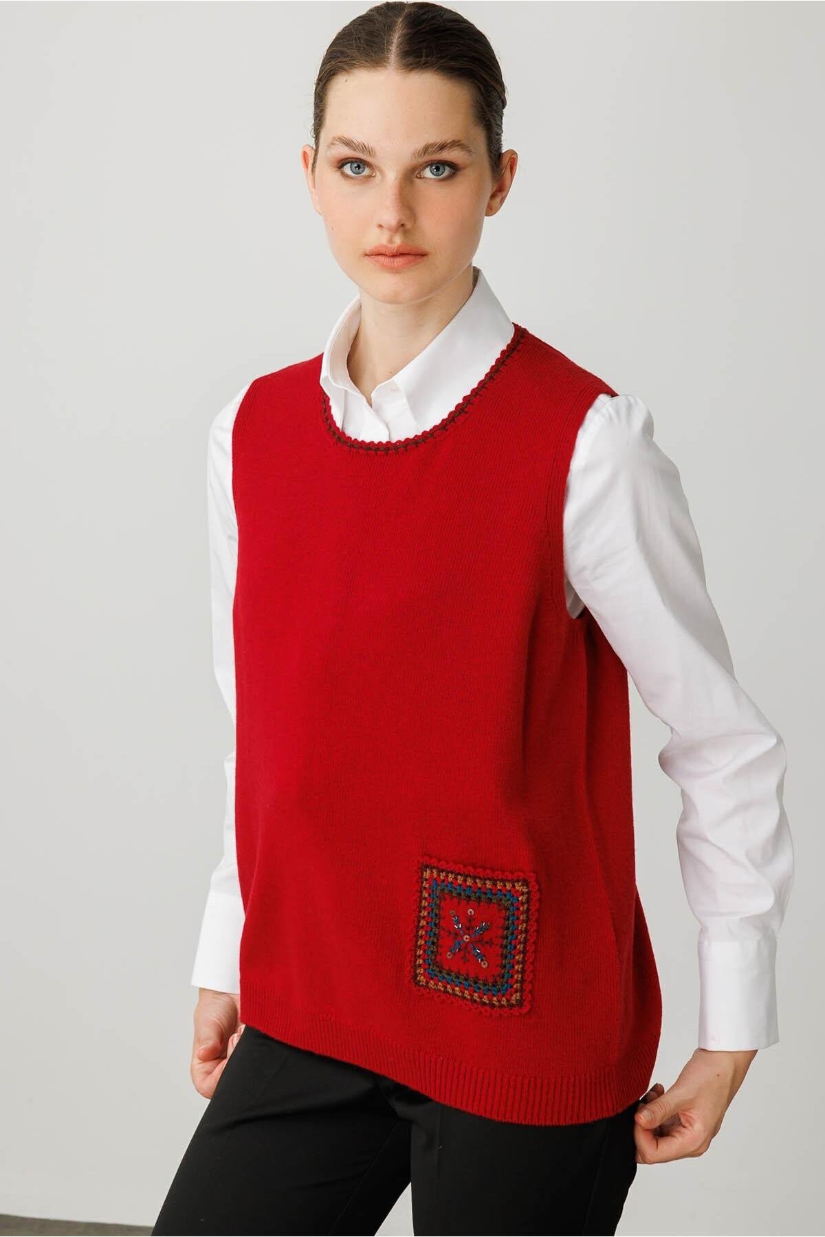 Kadın Sıfır Yaka Cep Üstü Çiçek Nakışlı Yün Süveter Kemik Kadın Sıfır Yaka Cep Üstü Çiçek Nakışlı Yün Süveter Kemik 25180 XL