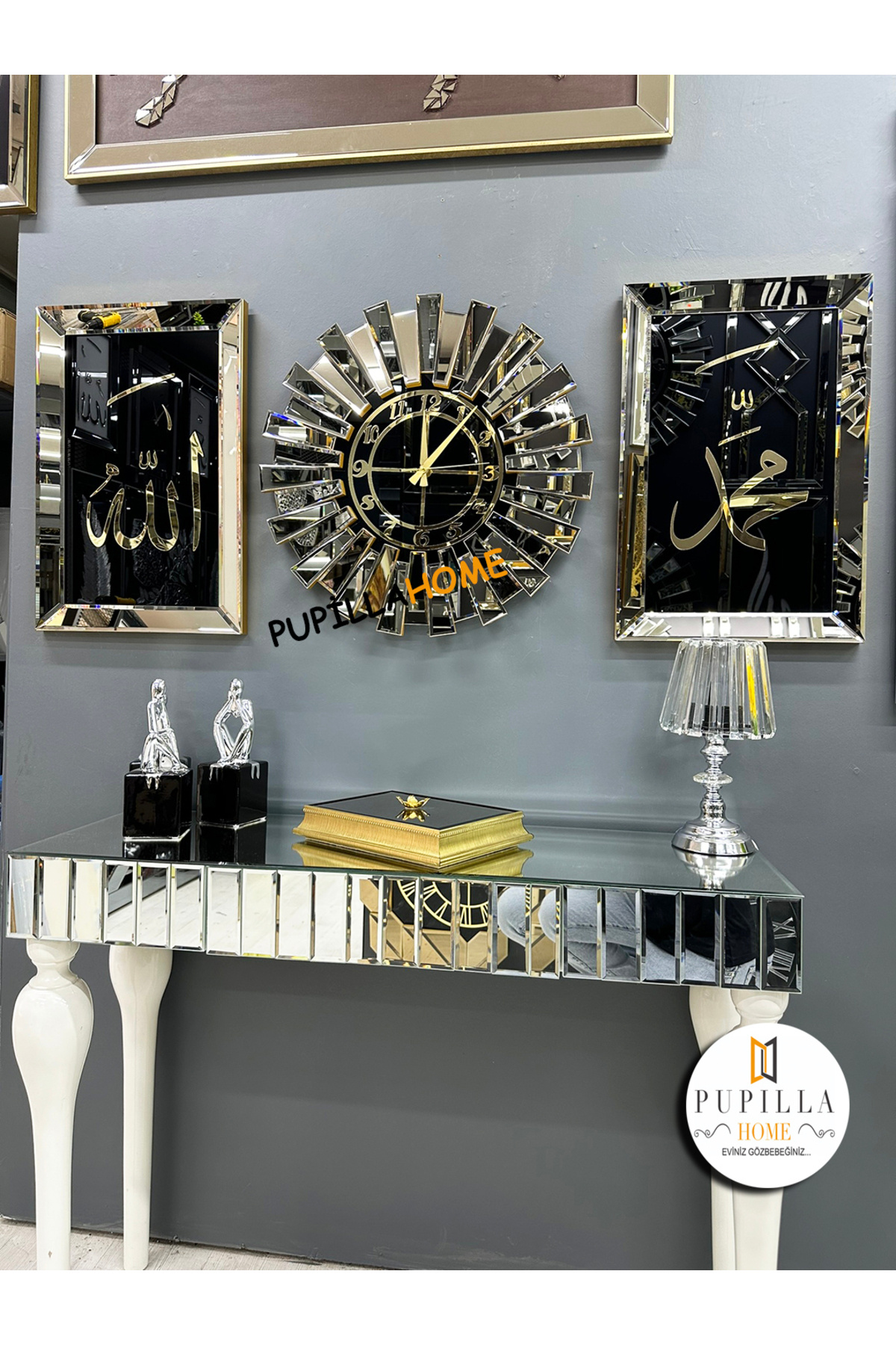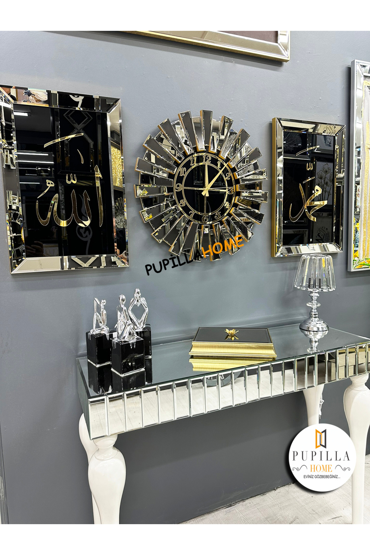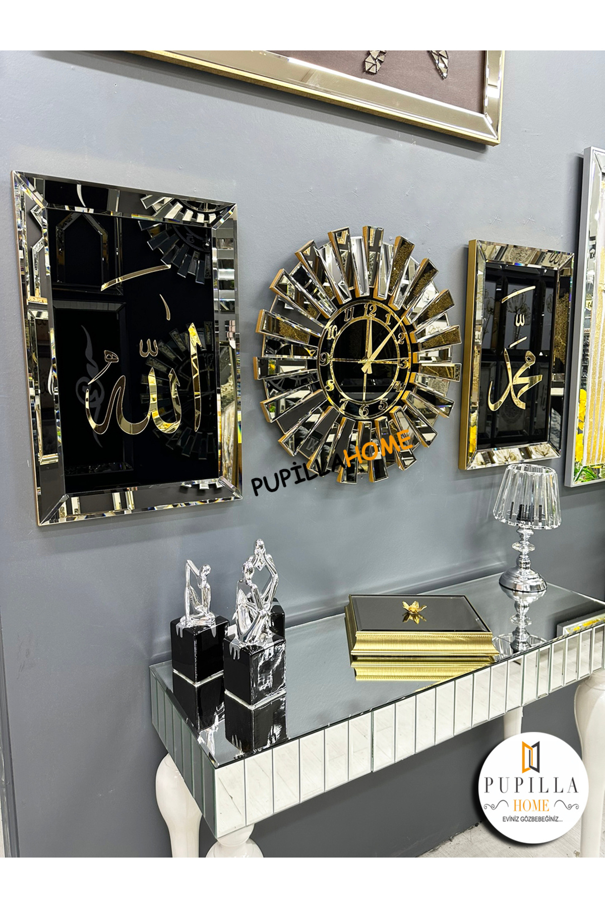 Gold Renk Allah C.c Ve Hz. Muhammed Aynalı Tablo Saat Gold Renk Allah C.c Ve Hz. Muhammed Aynalı Tablo Saat PH-1015 40 x 60