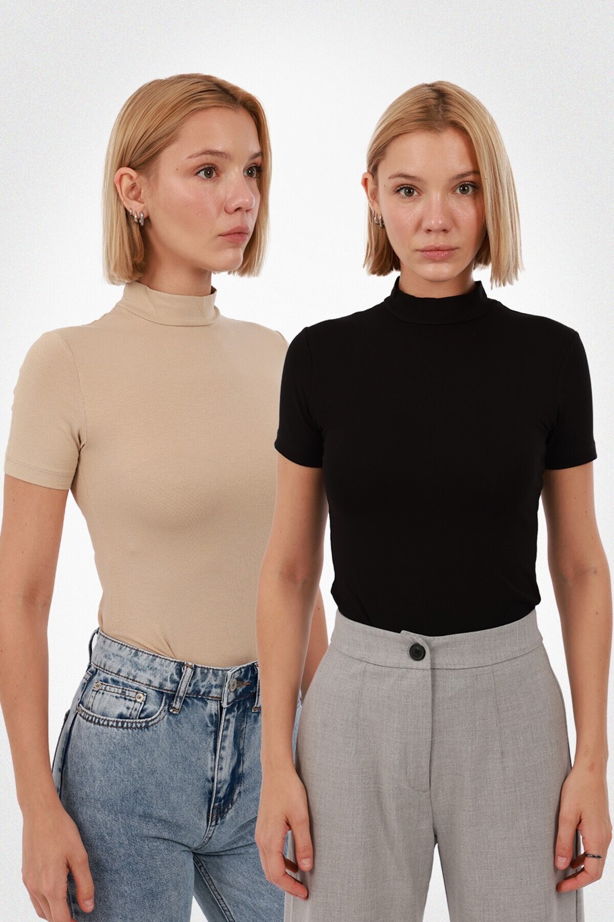 Kadın 2'li Kısa Kollu Bluz Set – Siyah Beyaz Kadın 2'li Kısa Kollu Bluz Set – Siyah Beyaz YD101X2 2XL