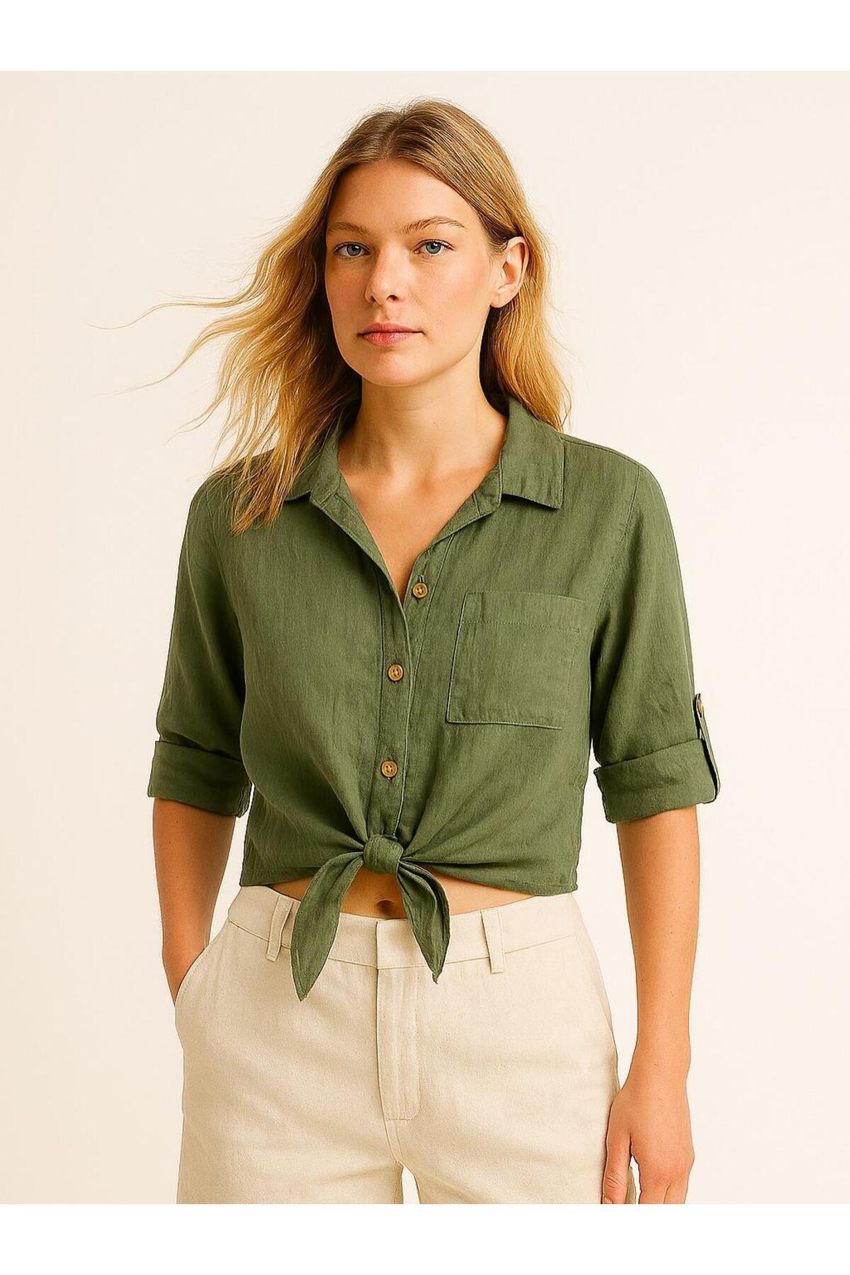 İtalyan Keten Gömlek - HAKİ İtalyan Keten Gömlek - HAKİ HEB3435 Standart