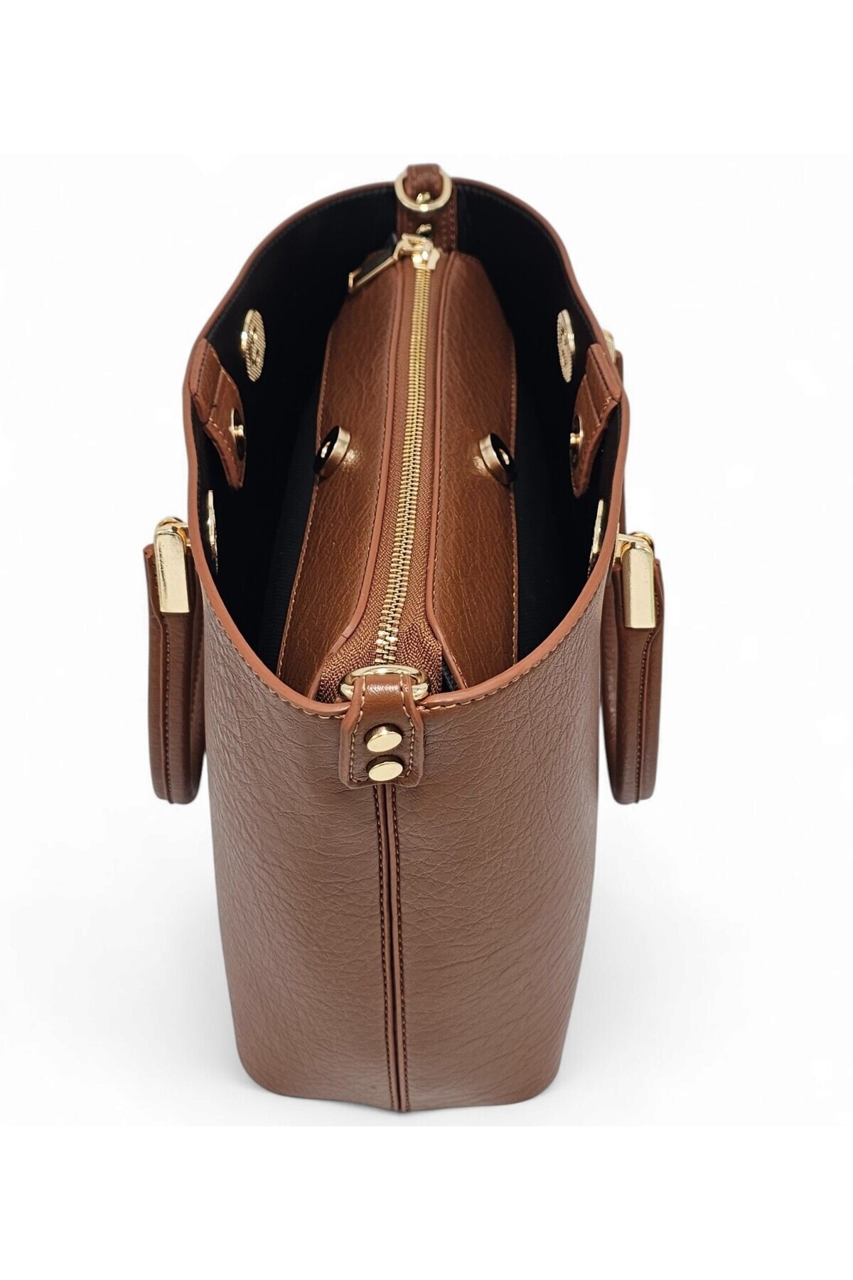 Taba Rengi Yumuşak Dokulu Charm'lı Klasik Kadın El Ve Uzun Askılı Omuz Çantası Taba Rengi Yumuşak Dokulu Charm'lı Klasik Kadın El Ve Uzun Askılı Omuz Çantası E-2210 تک سایز