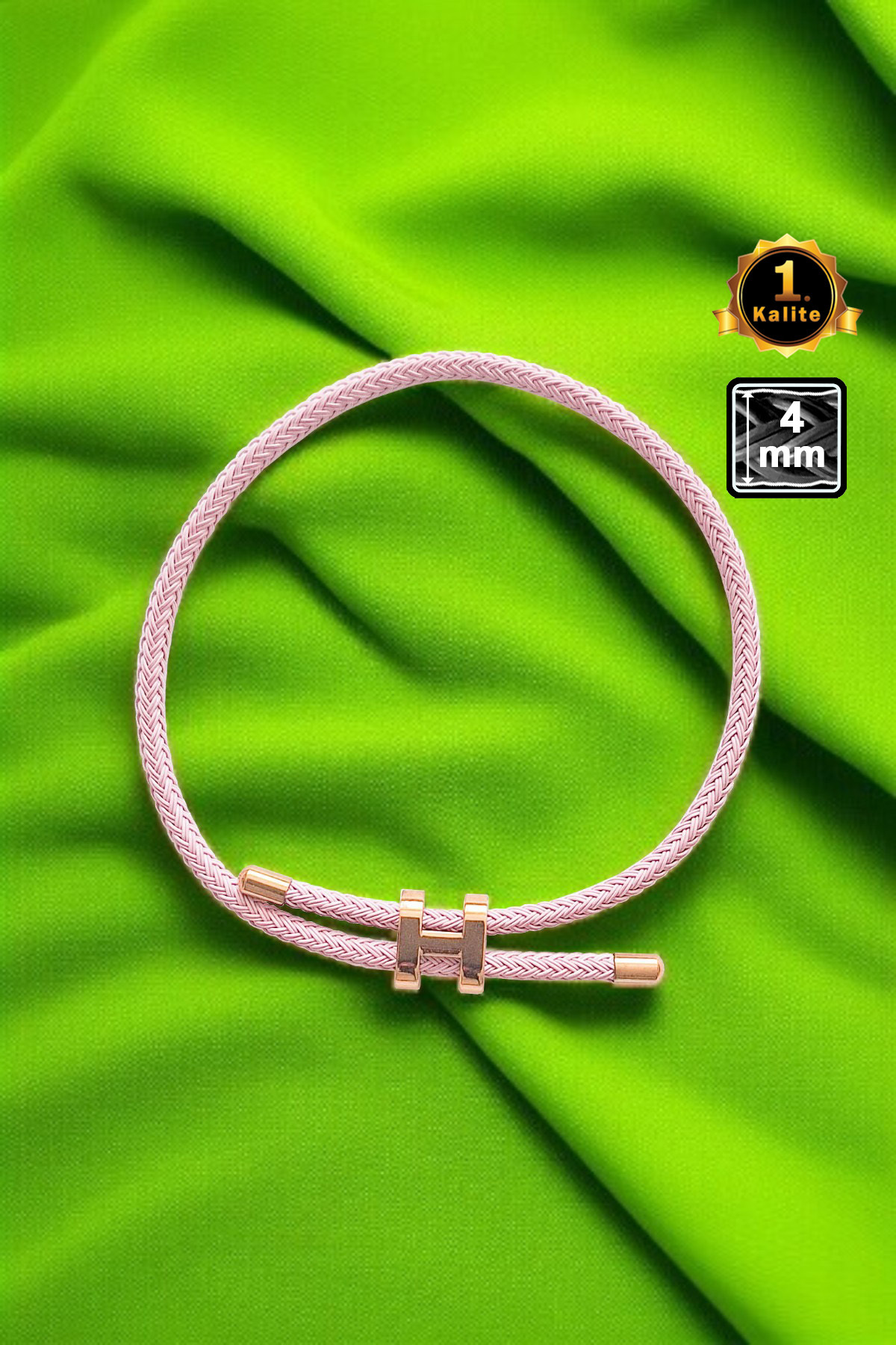 Örgü Kaplamalı Çelik Bileklik - Pembe Gümüş Örgü Kaplamalı Çelik Bileklik - Pembe Gümüş MISSTBEE008 L