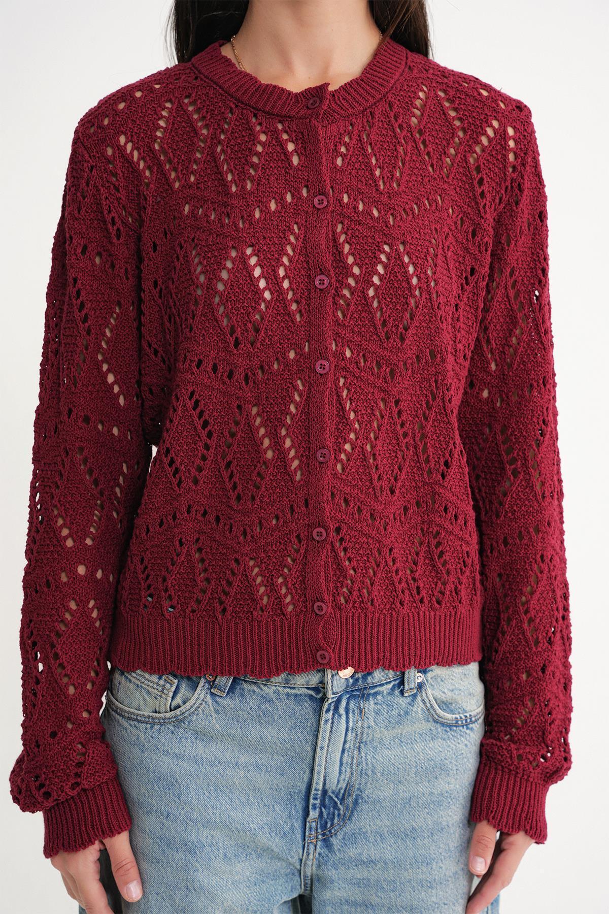6934 Kadın Baklava Desenli Mevsimlik Ajurlu Hırka Bordo 6934 Kadın Baklava Desenli Mevsimlik Ajurlu Hırka Bordo Y25HRK6934 Standart