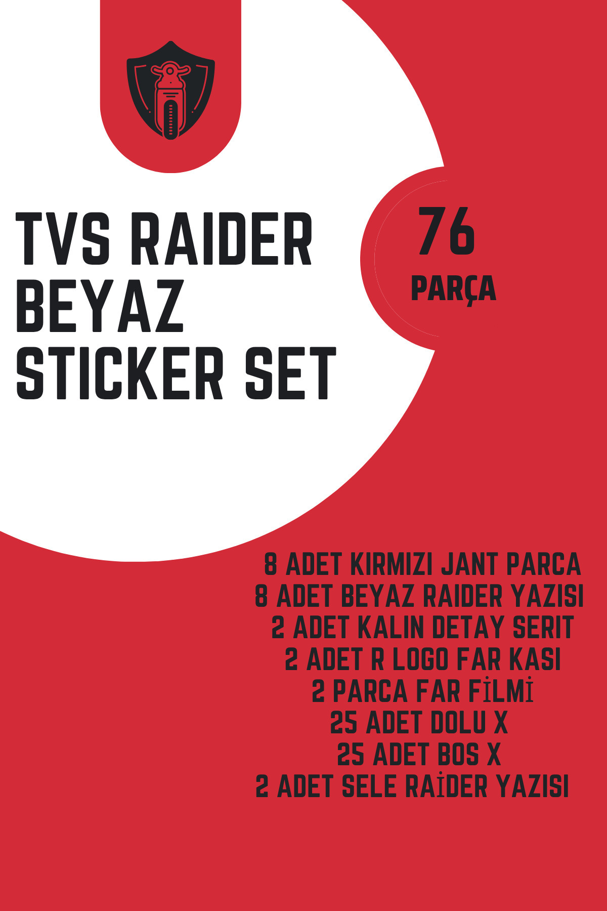 TVS Raider için 76 Parça Beyaz Renk Sticker Seti TVS Raider için 76 Parça Beyaz Renk Sticker Seti BXSTANVKXVNASKDTS تک سایز