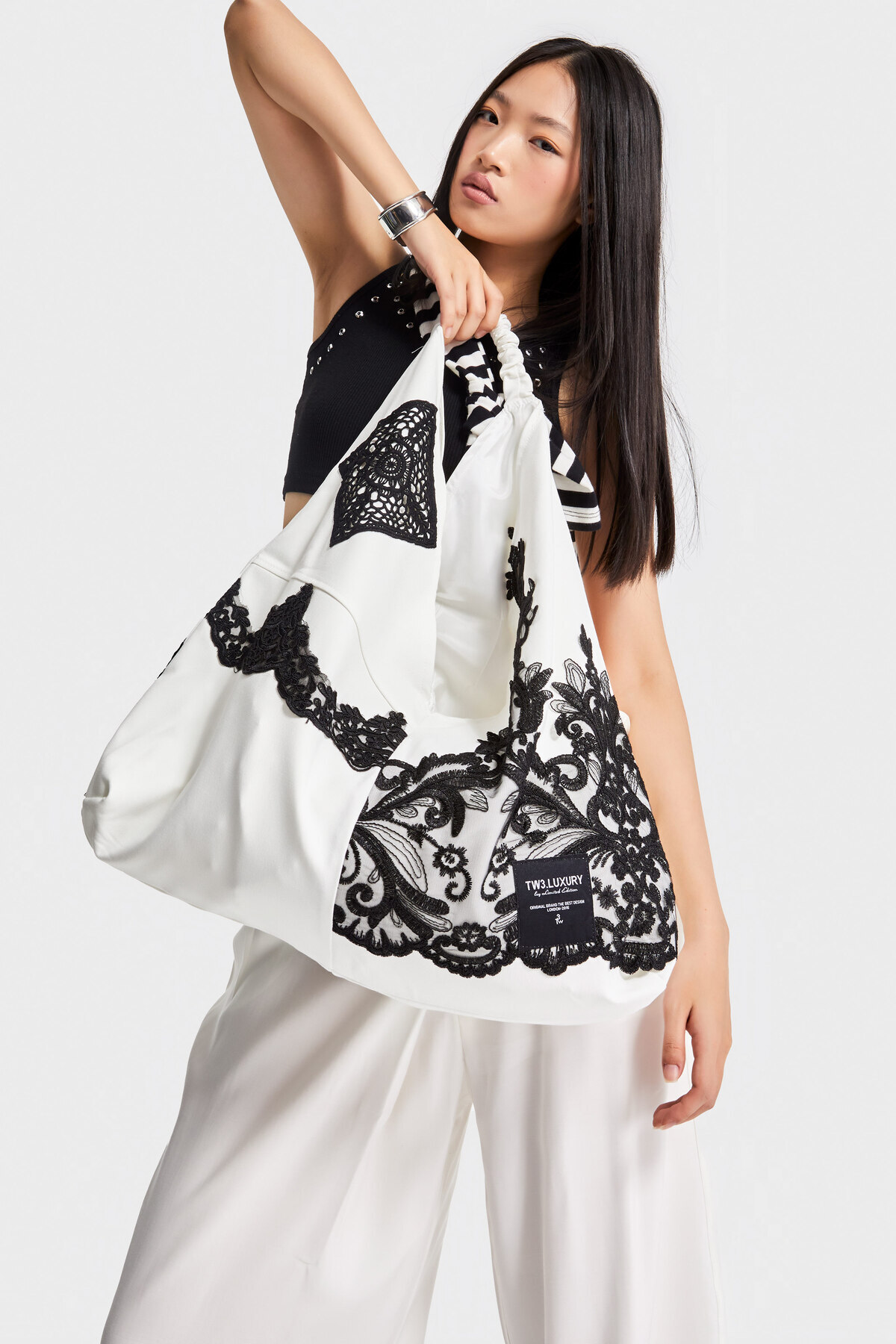 Ekru Siyah Dantel Renk Özel Tasarım Boyundan Askılı Çanta Ekru Siyah Dantel Renk Özel Tasarım Boyundan Askılı Çanta ITS TW1179 Standart