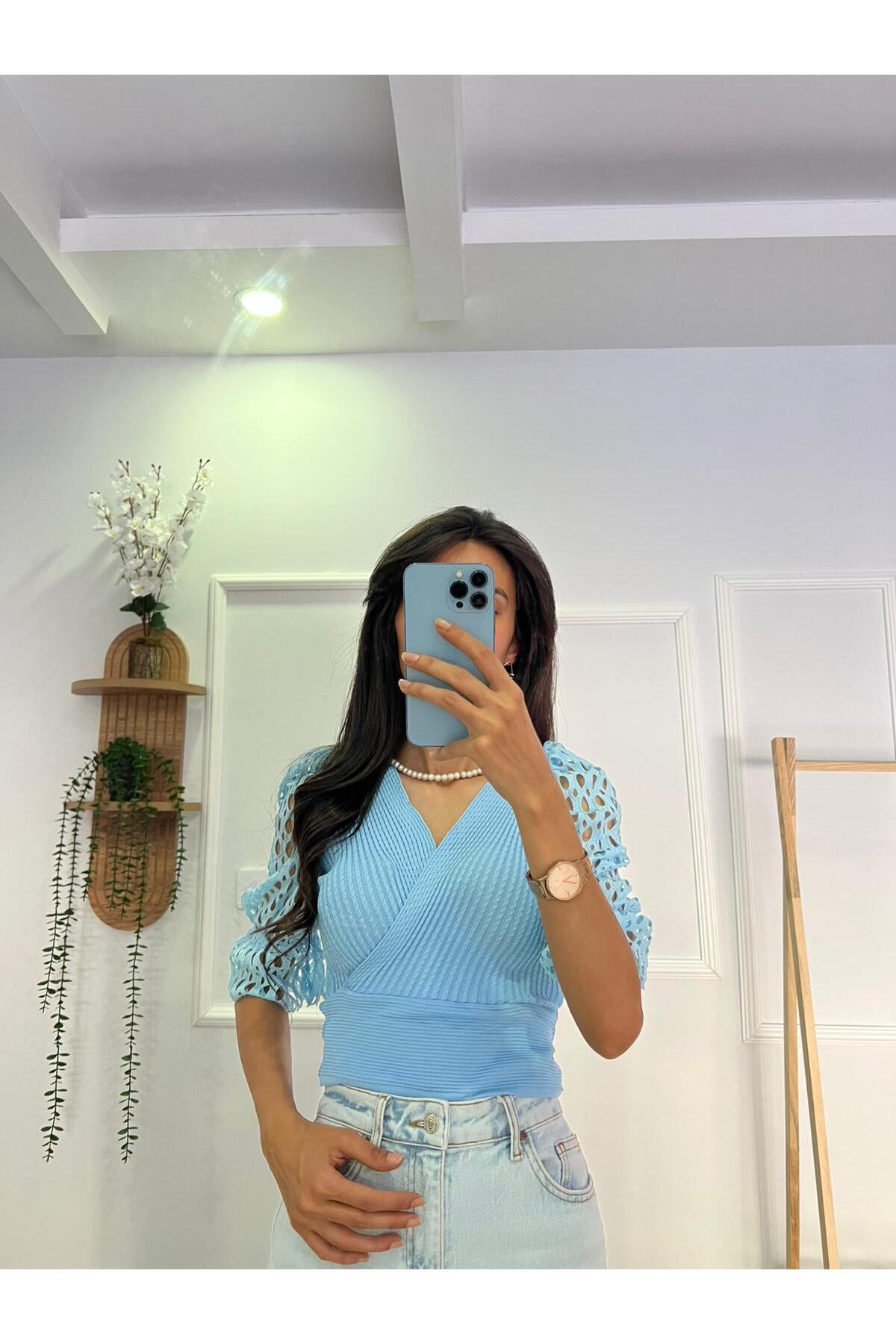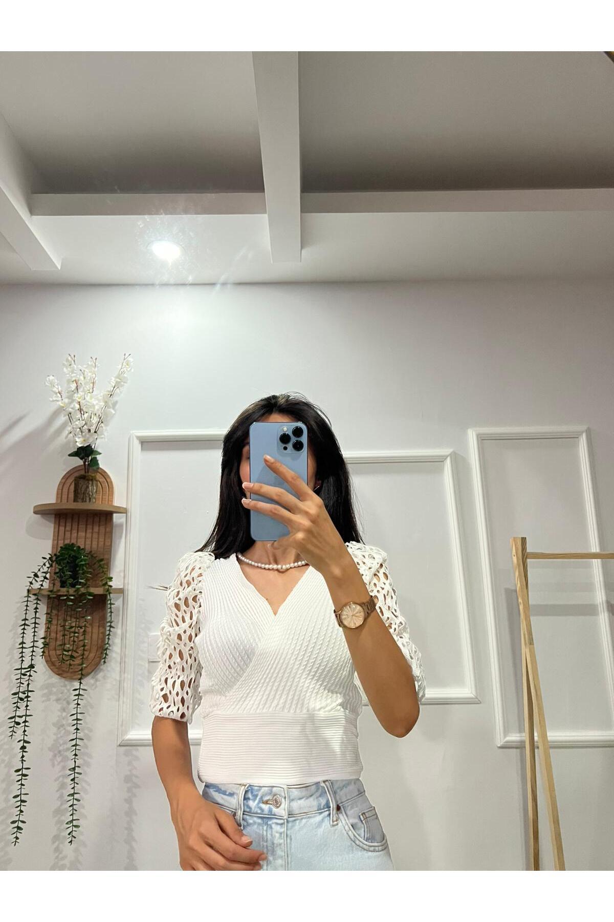 Kolları Dantelli Bluz Kolları Dantelli Bluz Sev0007 Standart