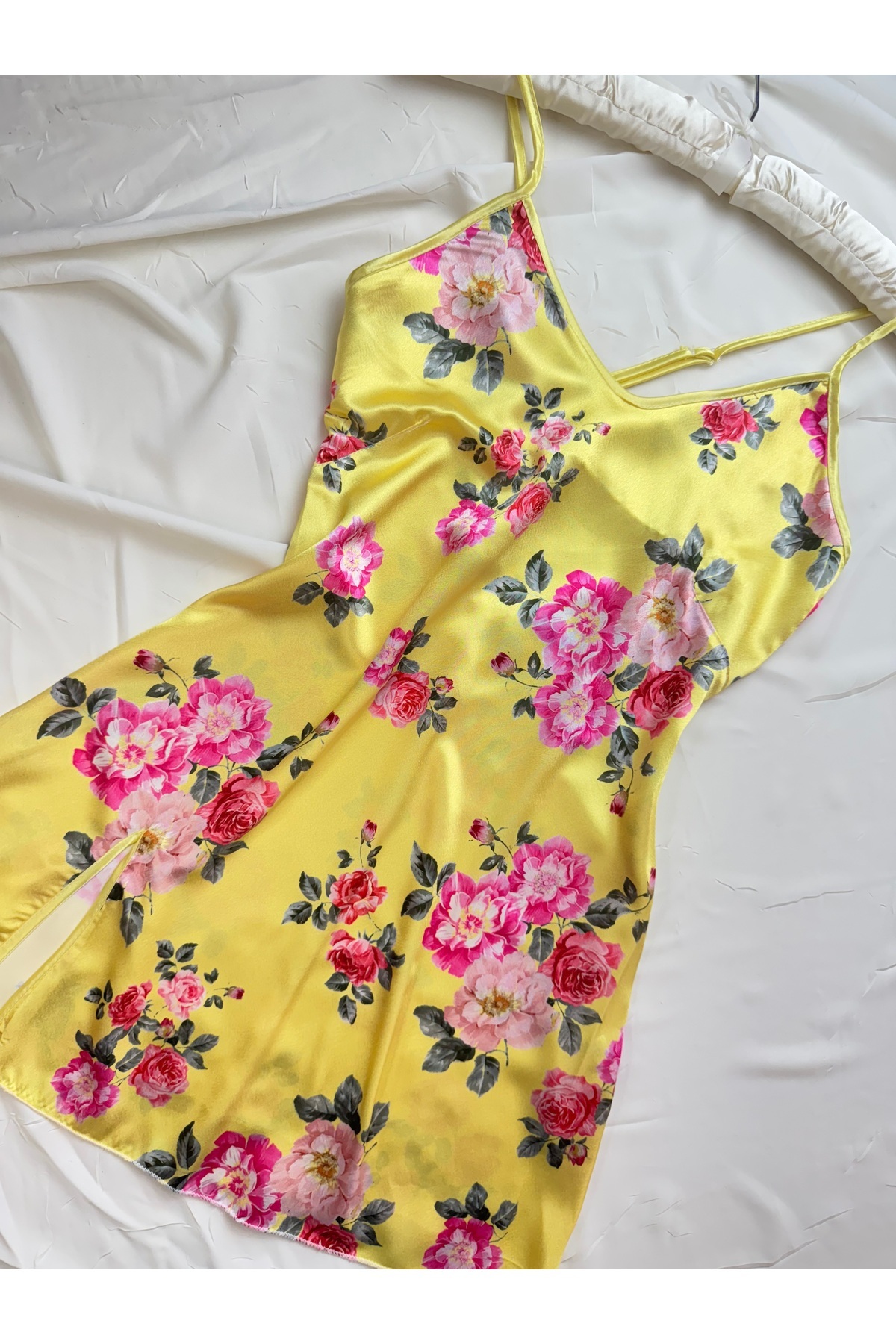 Basic Desenli Arkası Çarpraz Saten Mini Elbise Gecelik Basic Desenli Arkası Çarpraz Saten Mini Elbise Gecelik basic gecelik XL