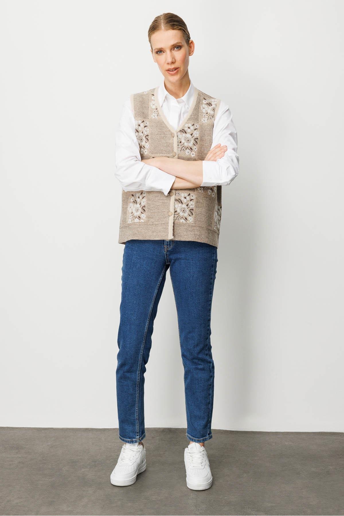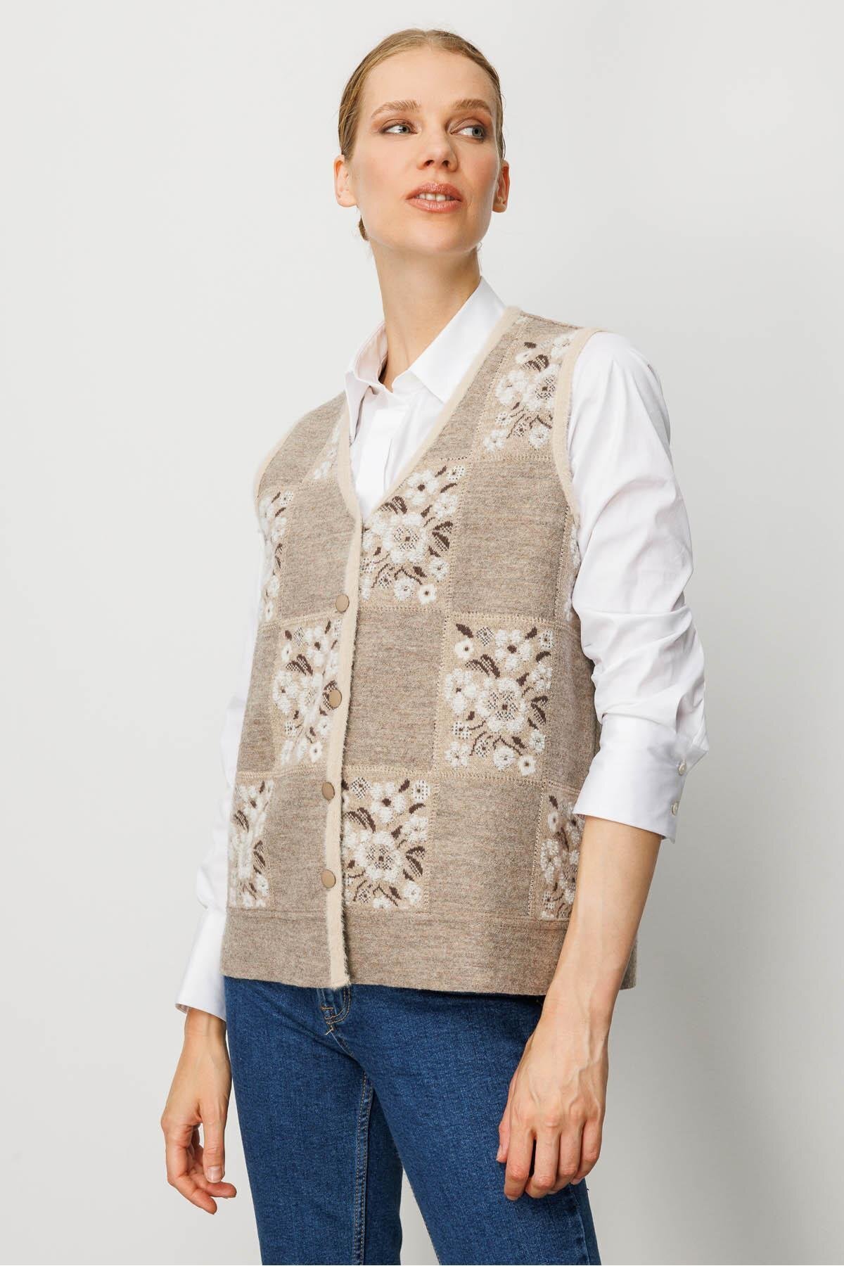 Kadın Pıtırcık Çiçekli Patchwork Keçe Yün Yelek Bej_Kemik Kadın Pıtırcık Çiçekli Patchwork Keçe Yün Yelek Bej_Kemik 24084 XL
