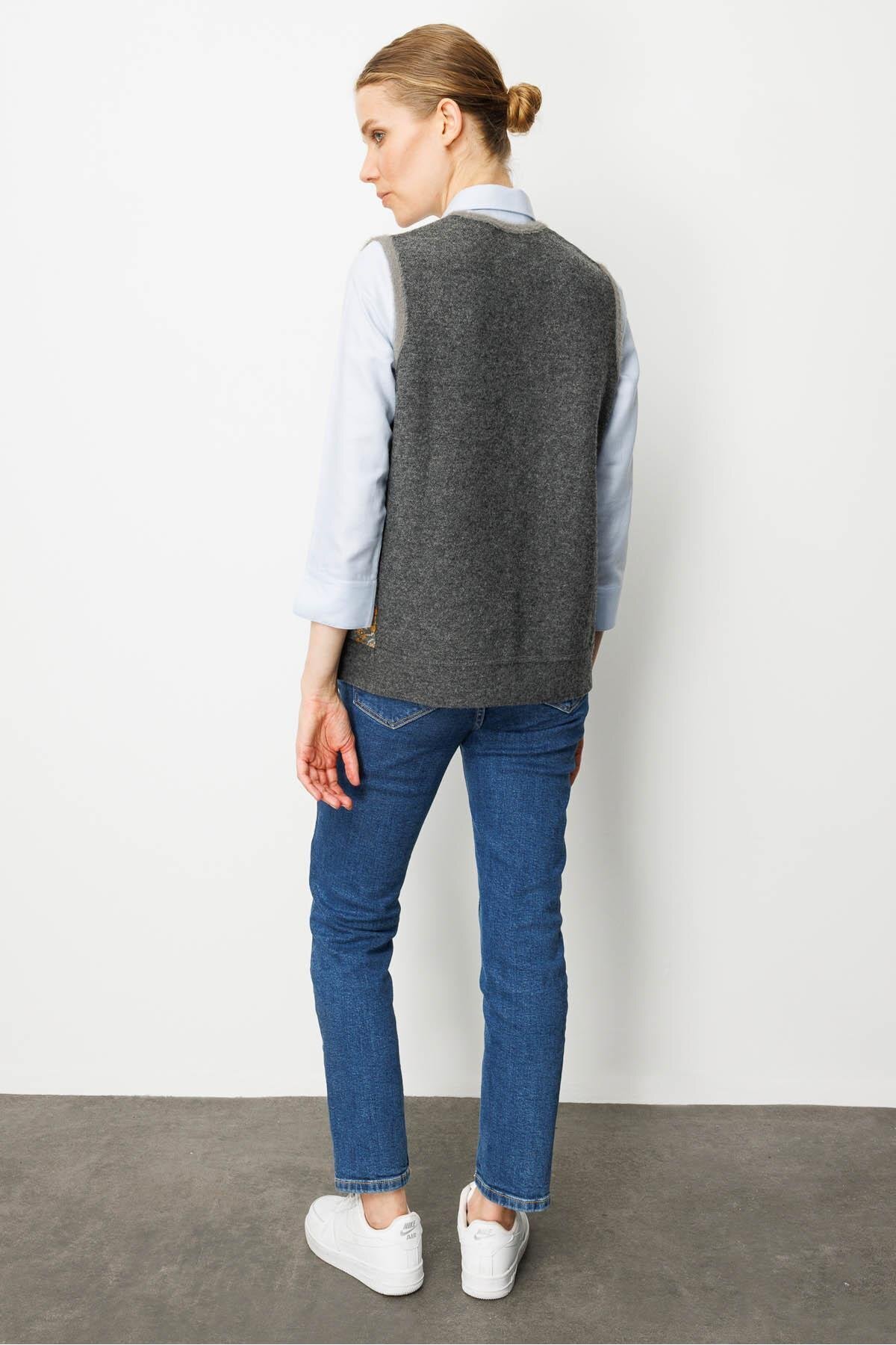 Kadın Pıtırcık Çiçekli Patchwork Keçe Yün Yelek Füme_Hardal Kadın Pıtırcık Çiçekli Patchwork Keçe Yün Yelek Füme_Hardal 24084 XL