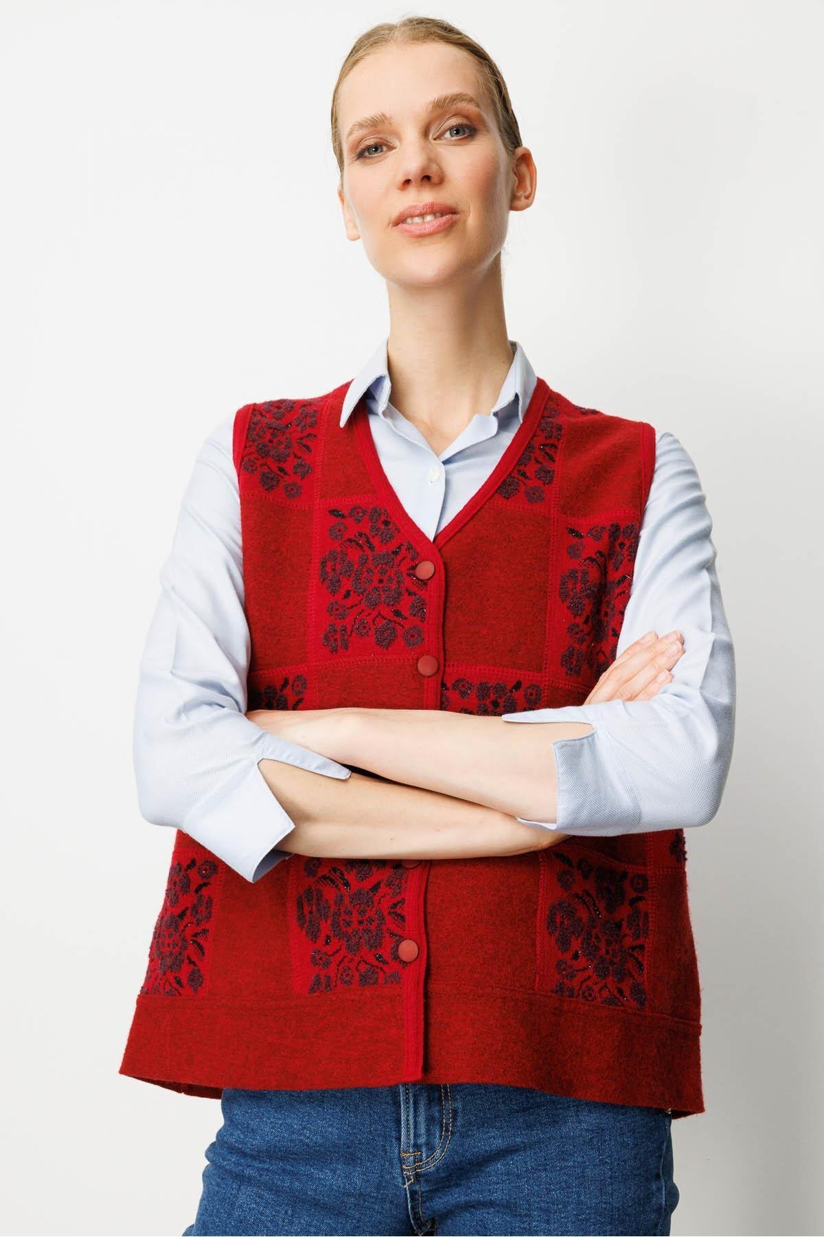 Kadın Pıtırcık Çiçekli Patchwork Keçe Yün Yelek Y.Kırmızı_K.Mürdüm Kadın Pıtırcık Çiçekli Patchwork Keçe Yün Yelek Y.Kırmızı_K.Mürdüm 24084 XL