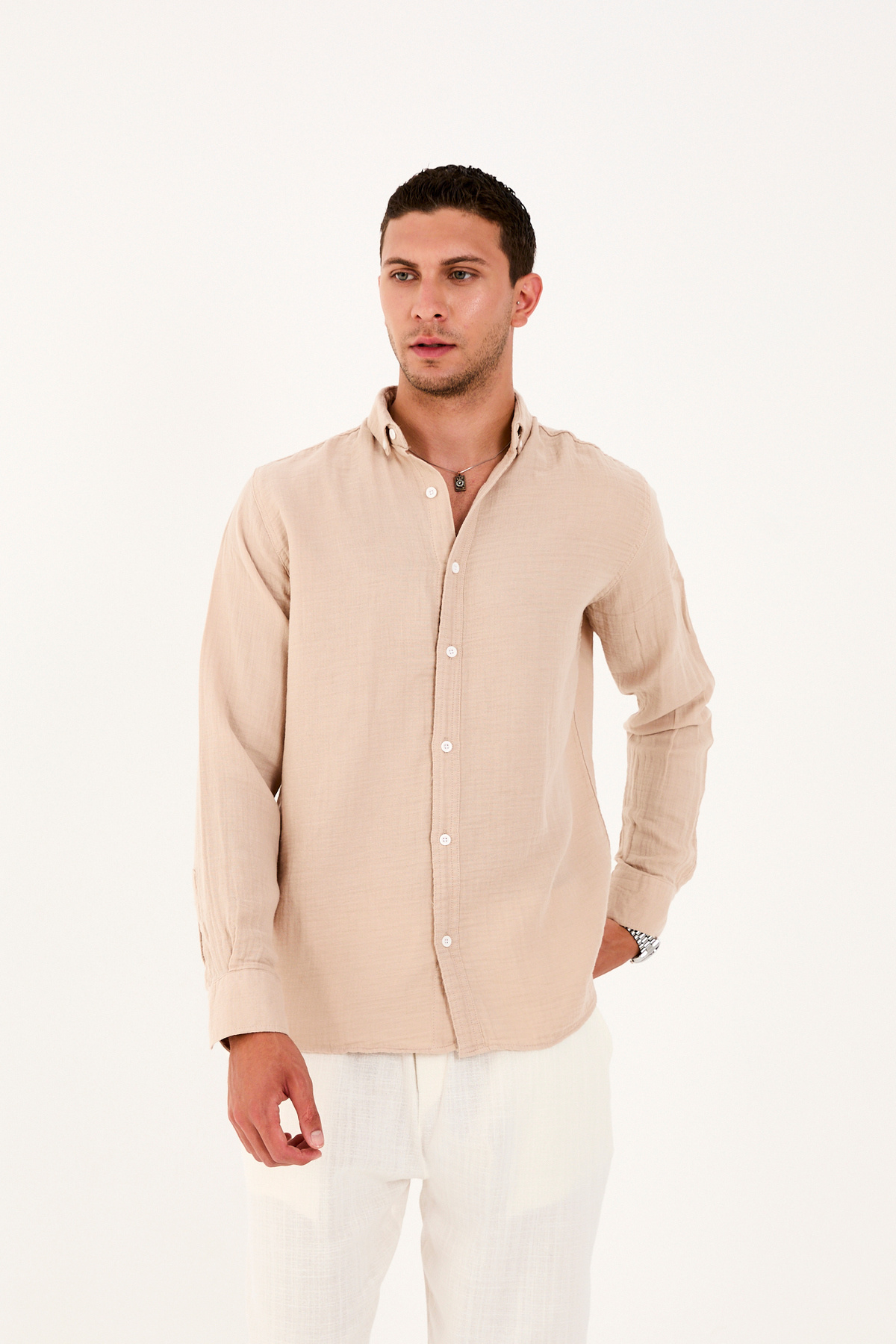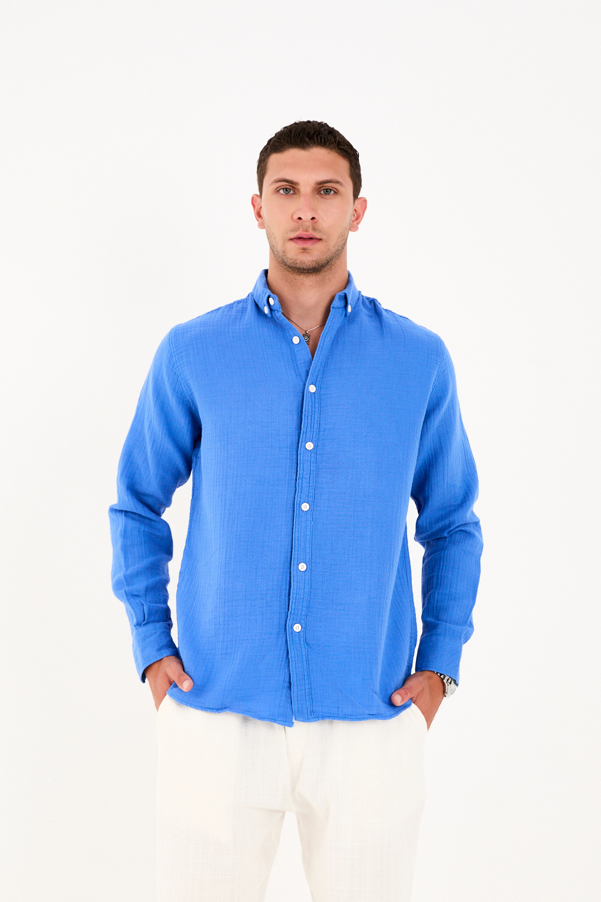 Erkek Müslin Kumaş %100 Pamuk Cepsiz Gömlek Erkek Müslin Kumaş %100 Pamuk Cepsiz Gömlek 251047 XL