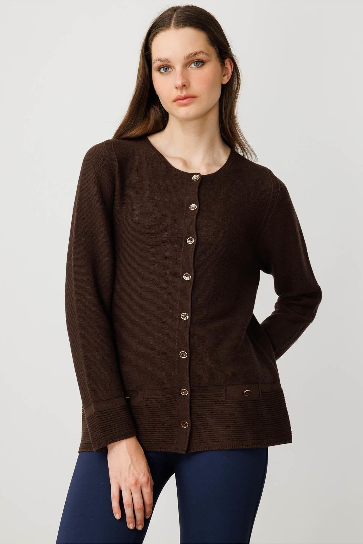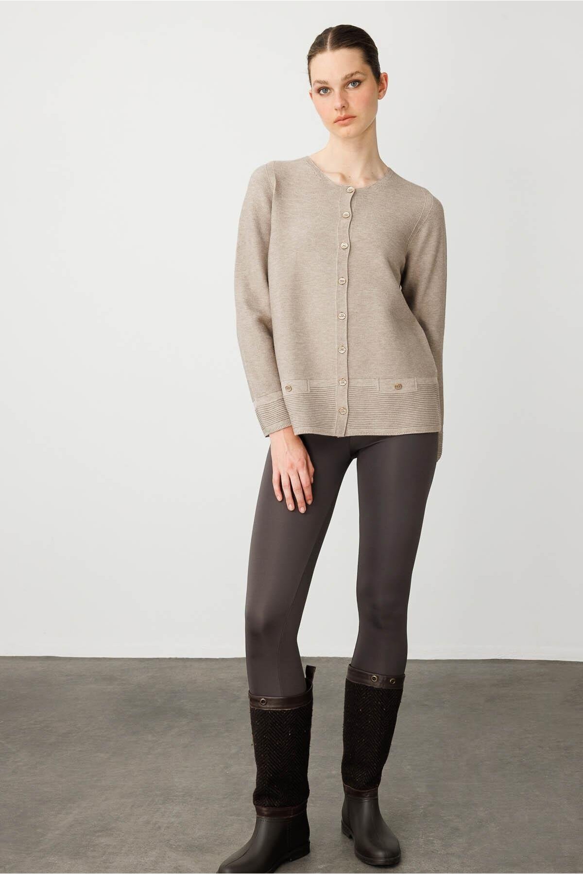 Kadın Sıfır Yaka Düğmeli Hırka Vizon Kadın Sıfır Yaka Düğmeli Hırka Vizon 25245 XL