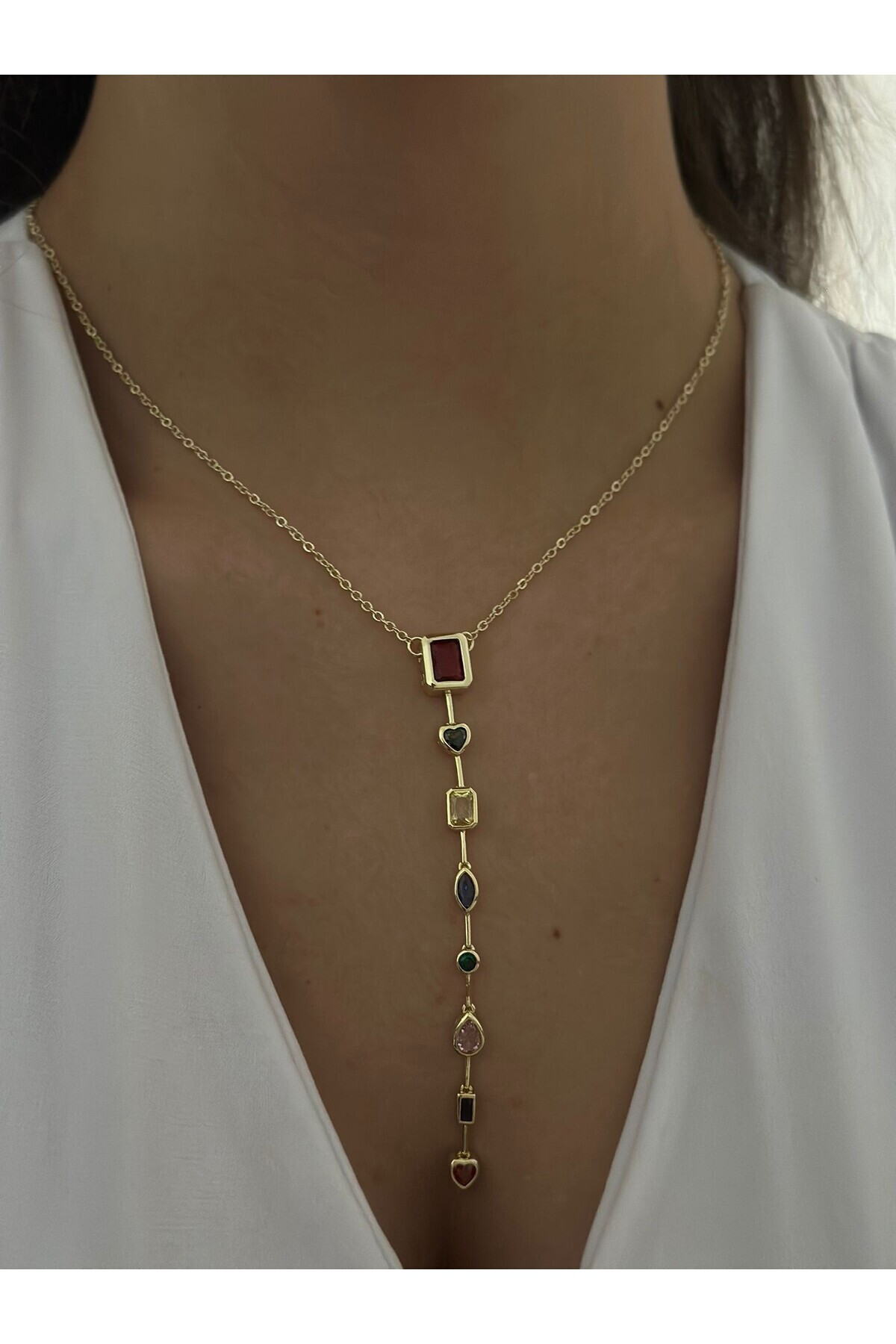 Renkli Sıralı Baget Taş Detay Premium Kolye Renkli Sıralı Baget Taş Detay Premium Kolye Myl0000013855 Orta Boy