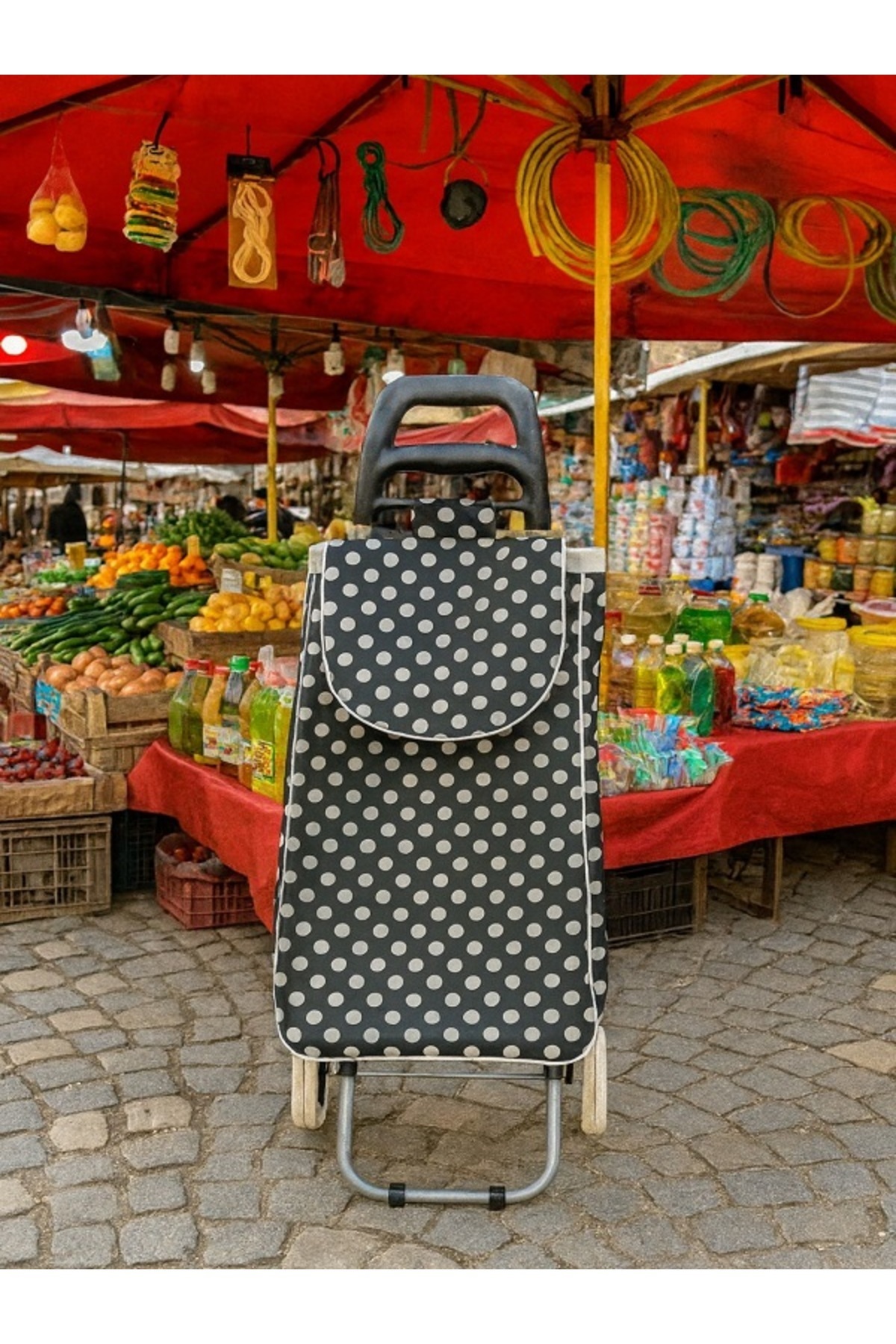 Ses Yapmaz Tekerlekli Su Geçirmez Çantalı Alüminyum Gövdeli Katlanabilir Pazar Arabası