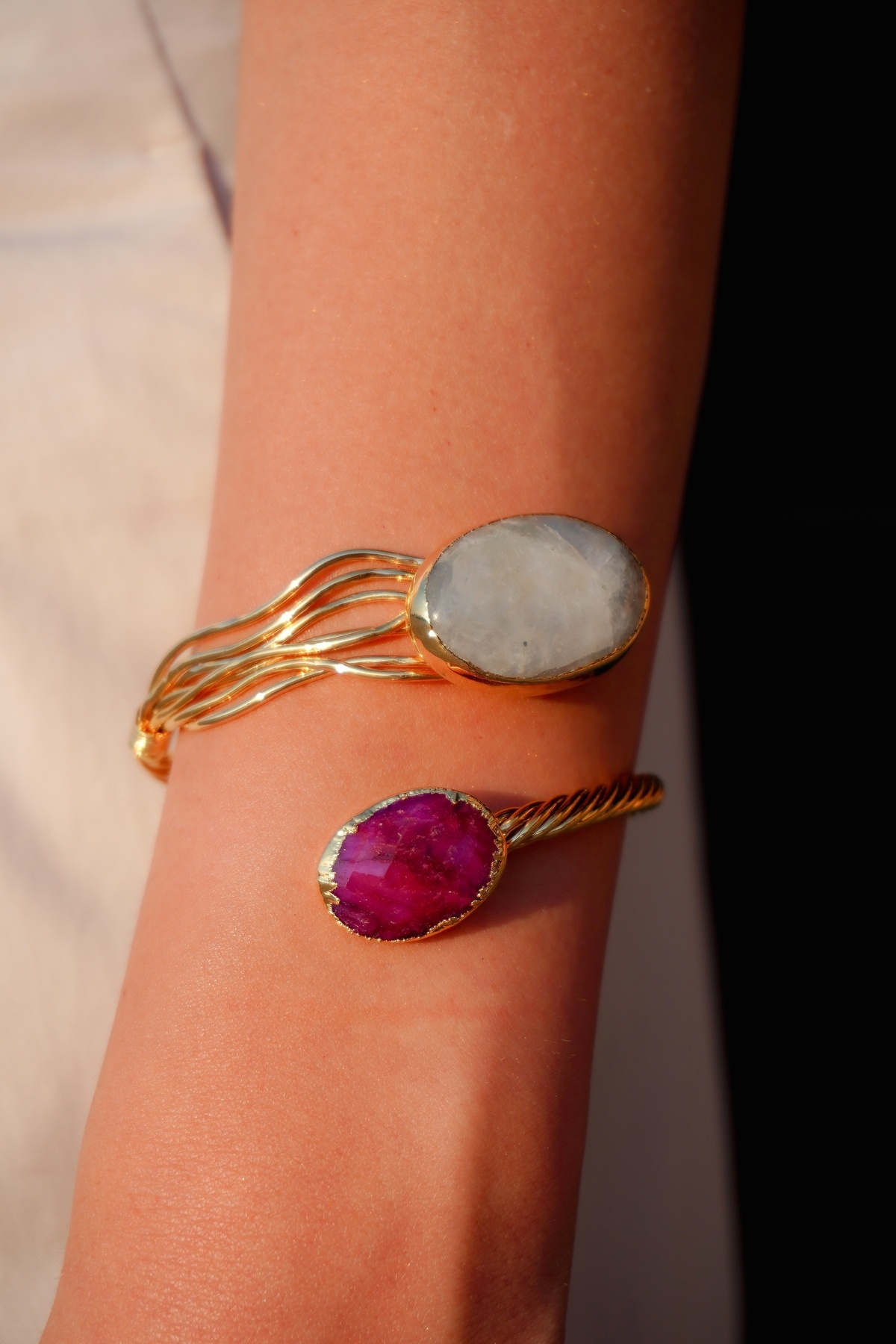 Aytaşı ve Yakut Doğal Taş Altın Kaplama Pirinç El Yapımı Bilezik Aytaşı ve Yakut Doğal Taş Altın Kaplama Pirinç El Yapımı Bilezik RMN-00122 تک سایز