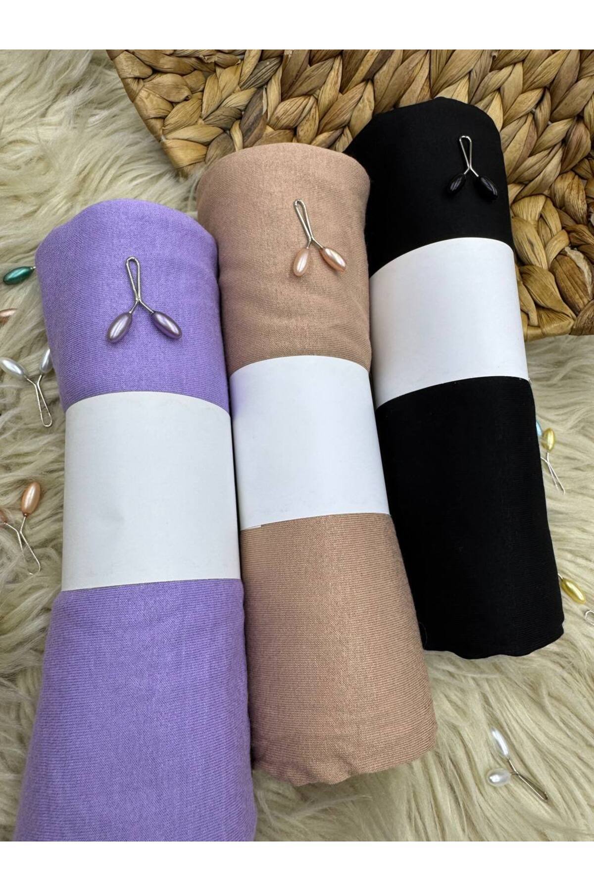 3'lü Penye Düz Şal-KOYU Bej-SİYAH-Lila 3'lü Penye Düz Şal-KOYU Bej-SİYAH-Lila LS450 70 x 190