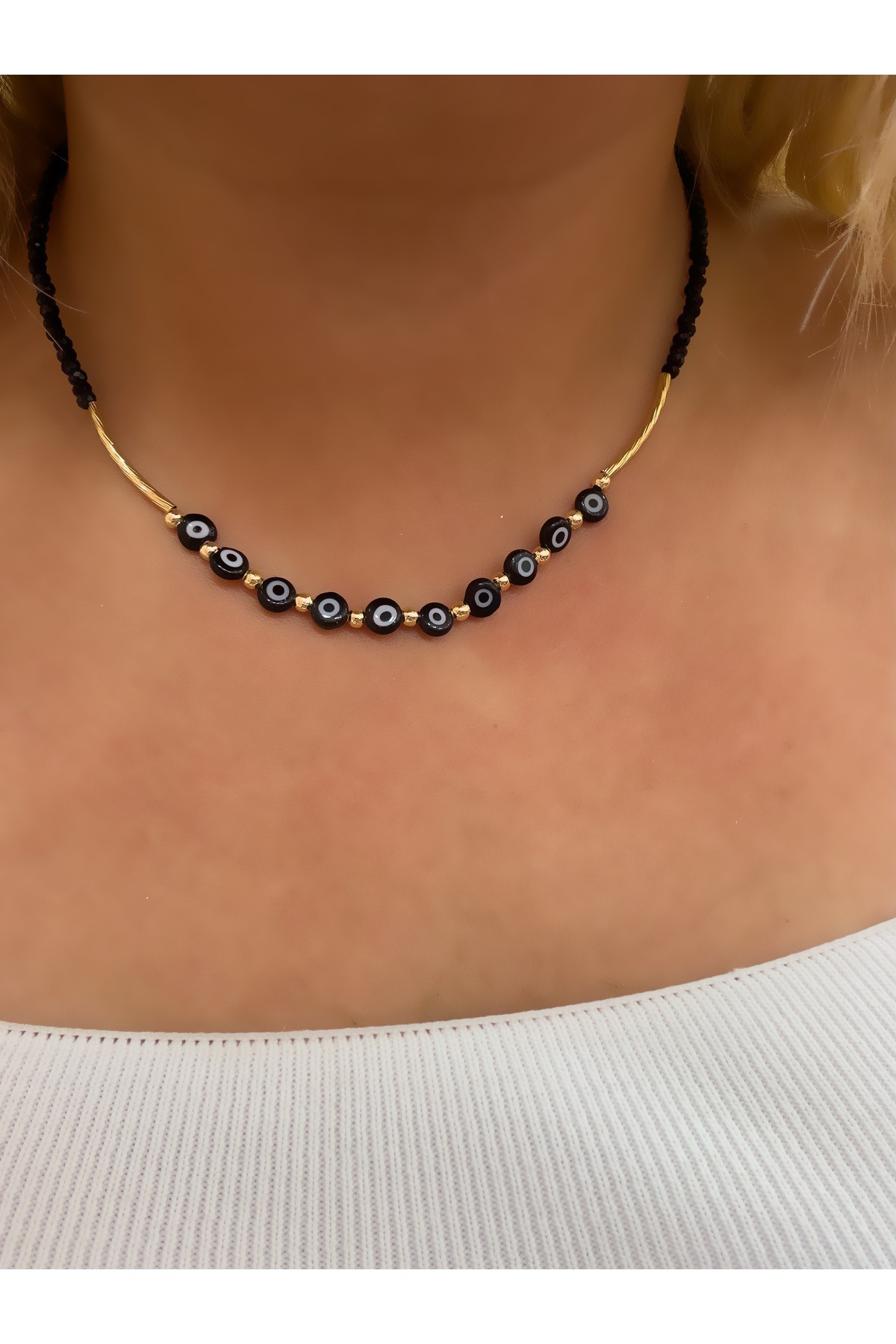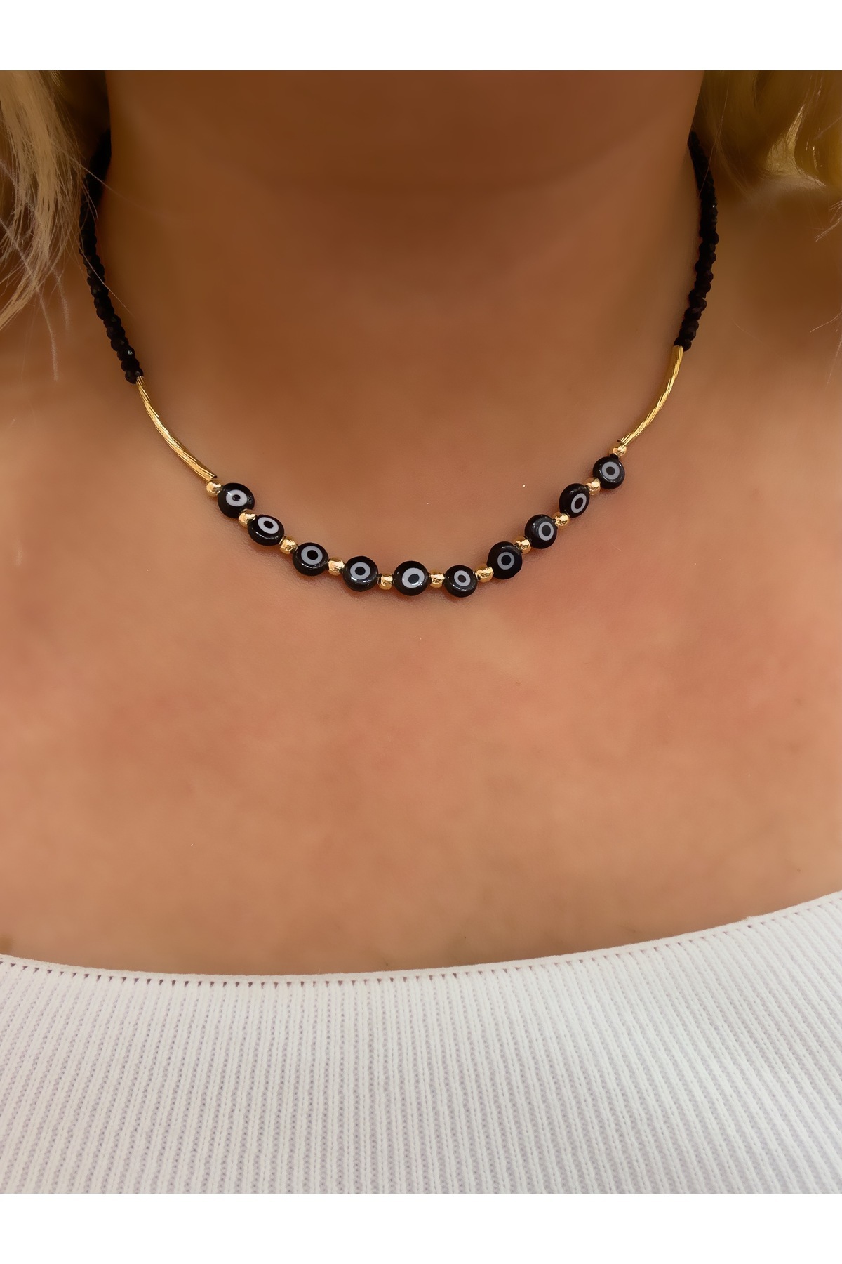 NAZAR BONCUĞU DETAYLI SİYAH YAZLIK BONCUK KOLYE NAZAR BONCUĞU DETAYLI SİYAH YAZLIK BONCUK KOLYE 600256 0