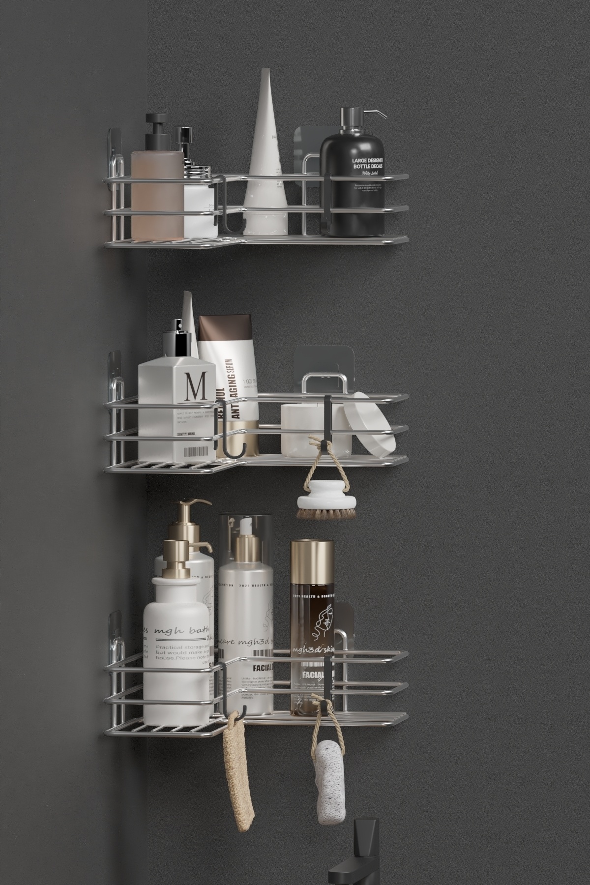 Krom Gümüş Yapışkanlı 3'lü Banyo Köşeliği | Duş Şampuanlık Organizer Köşe Rafı Düzenleyici Organizer Krom Gümüş Yapışkanlı 3'lü Banyo Köşeliği | Duş Şampuanlık Organizer Köşe Rafı Düzenleyici Organizer 40000BNY3KSERAF تک سایز