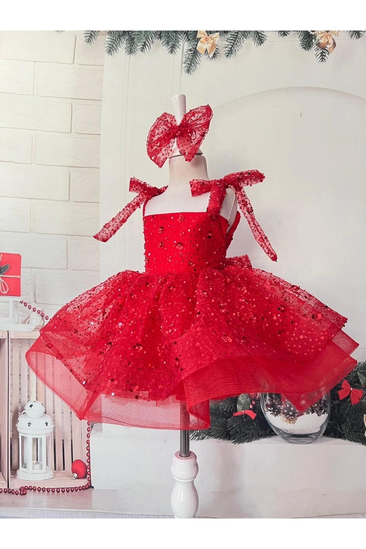 Kırmızı Askılı Kare Yakalı Kız çocuk Elbisesi Abiye Kırmızı Askılı Kare Yakalı Kız çocuk Elbisesi Abiye P3353S7269 7 Yaş