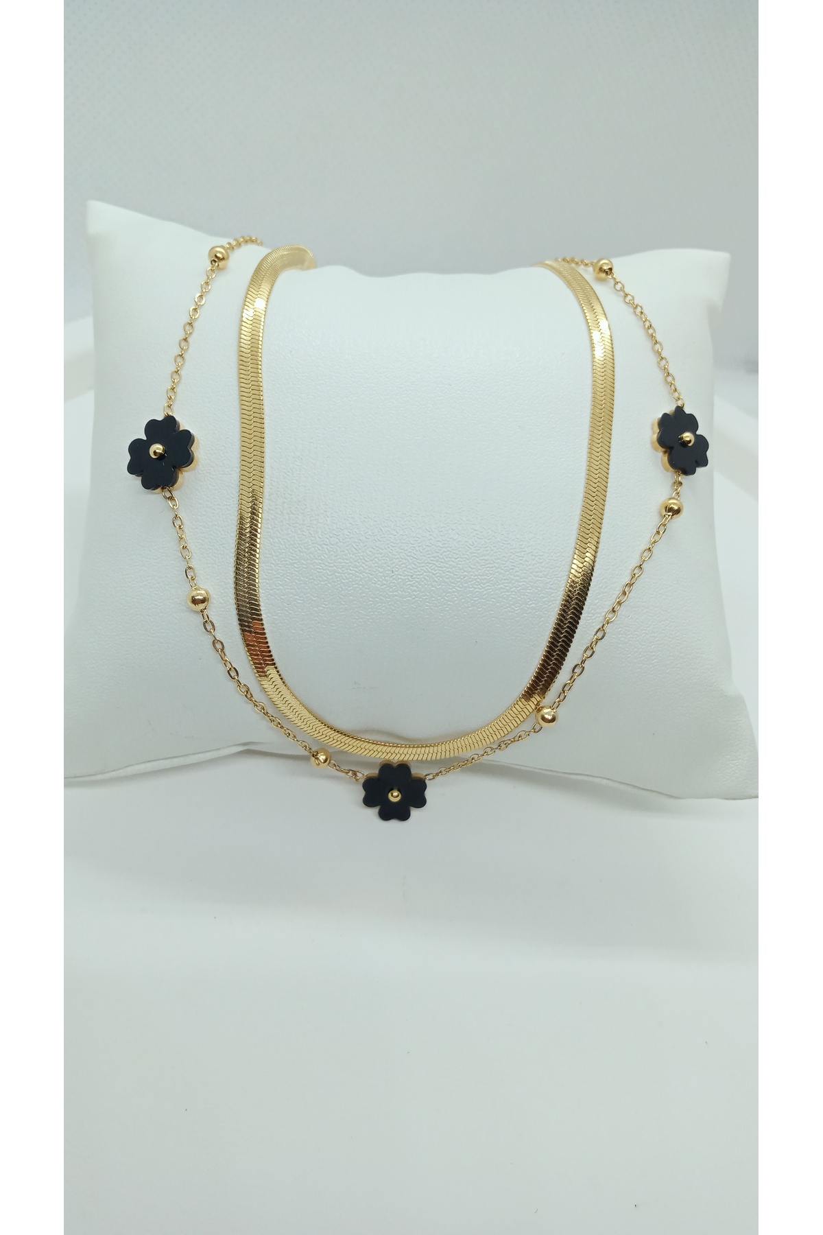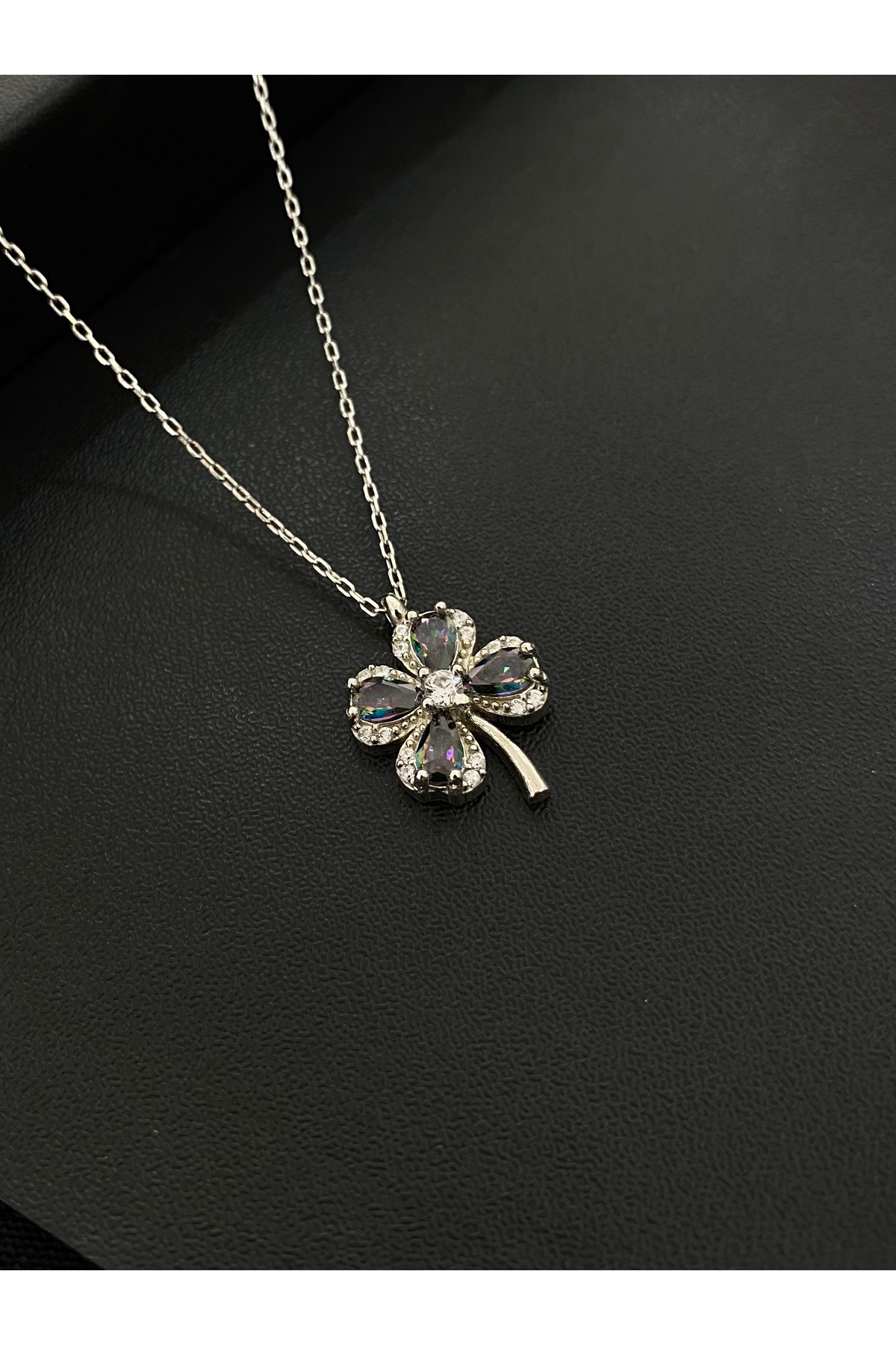 Taşlı gold yonca kolye Taşlı gold yonca kolye çelik049 0