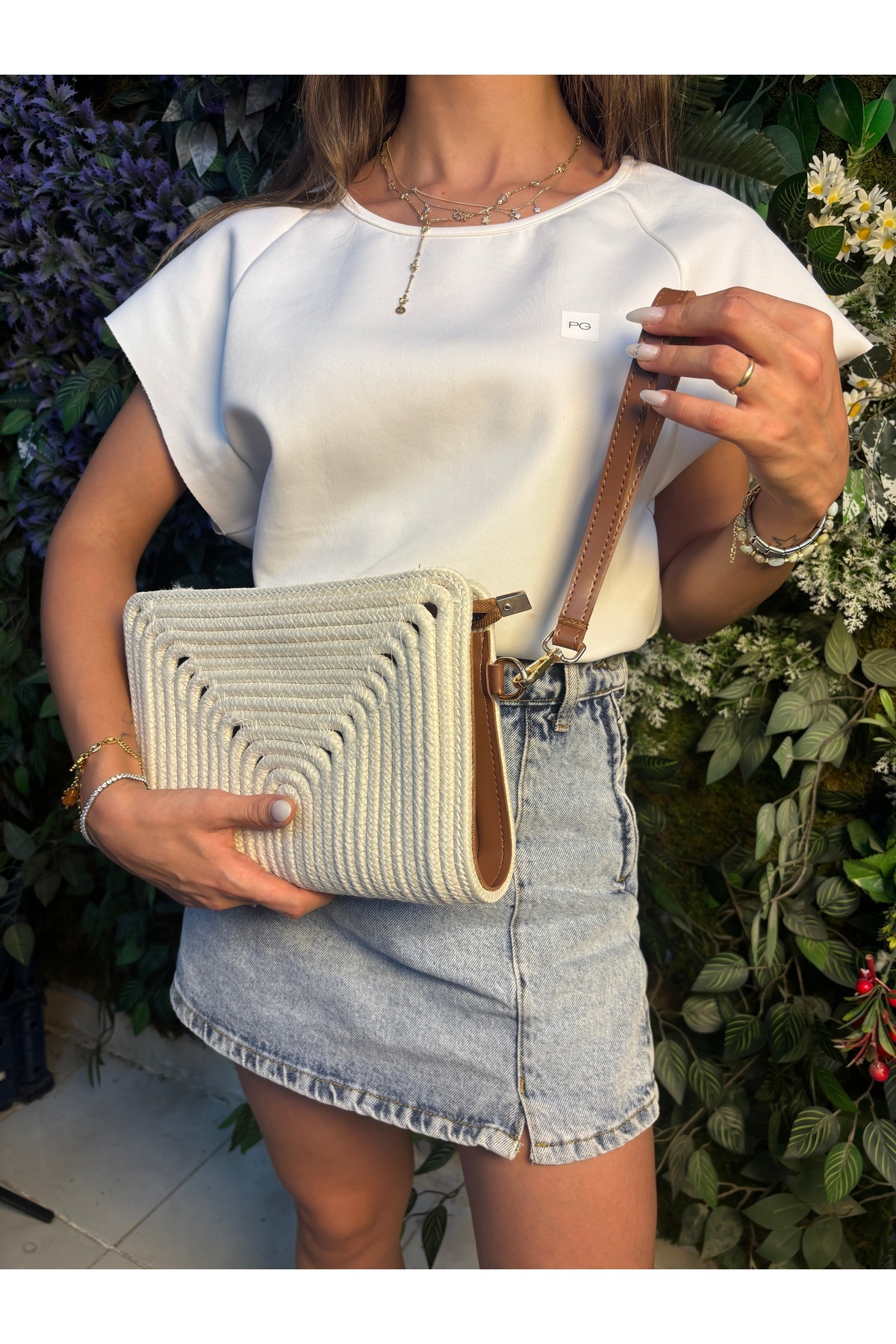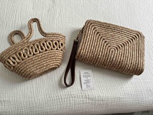 Soho Hasır Görünümlü Deri Karışımı Portföy Cluıtch Çanta Soho Hasır Görünümlü Deri Karışımı Portföy Cluıtch Çanta SohoMavaux تک سایز