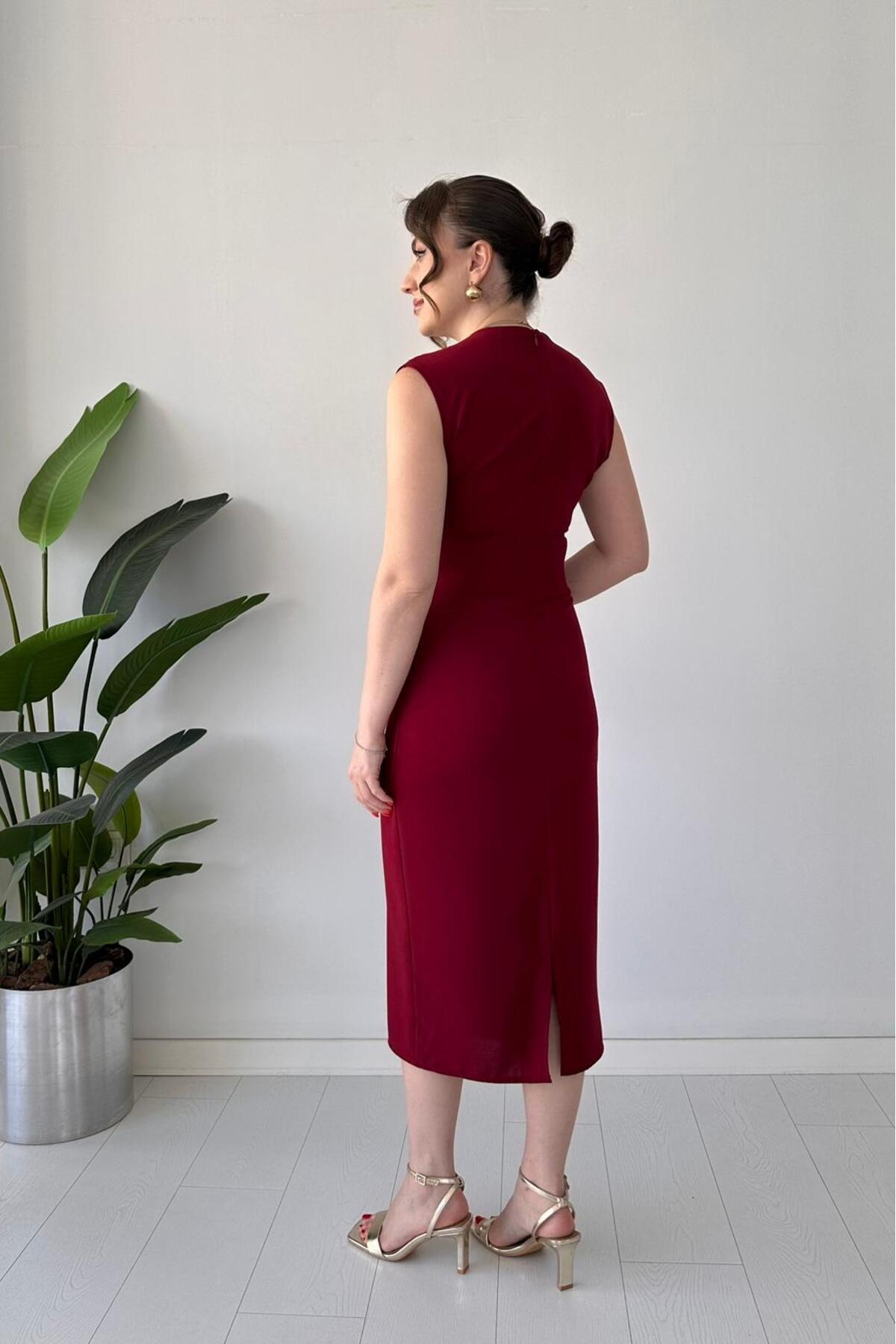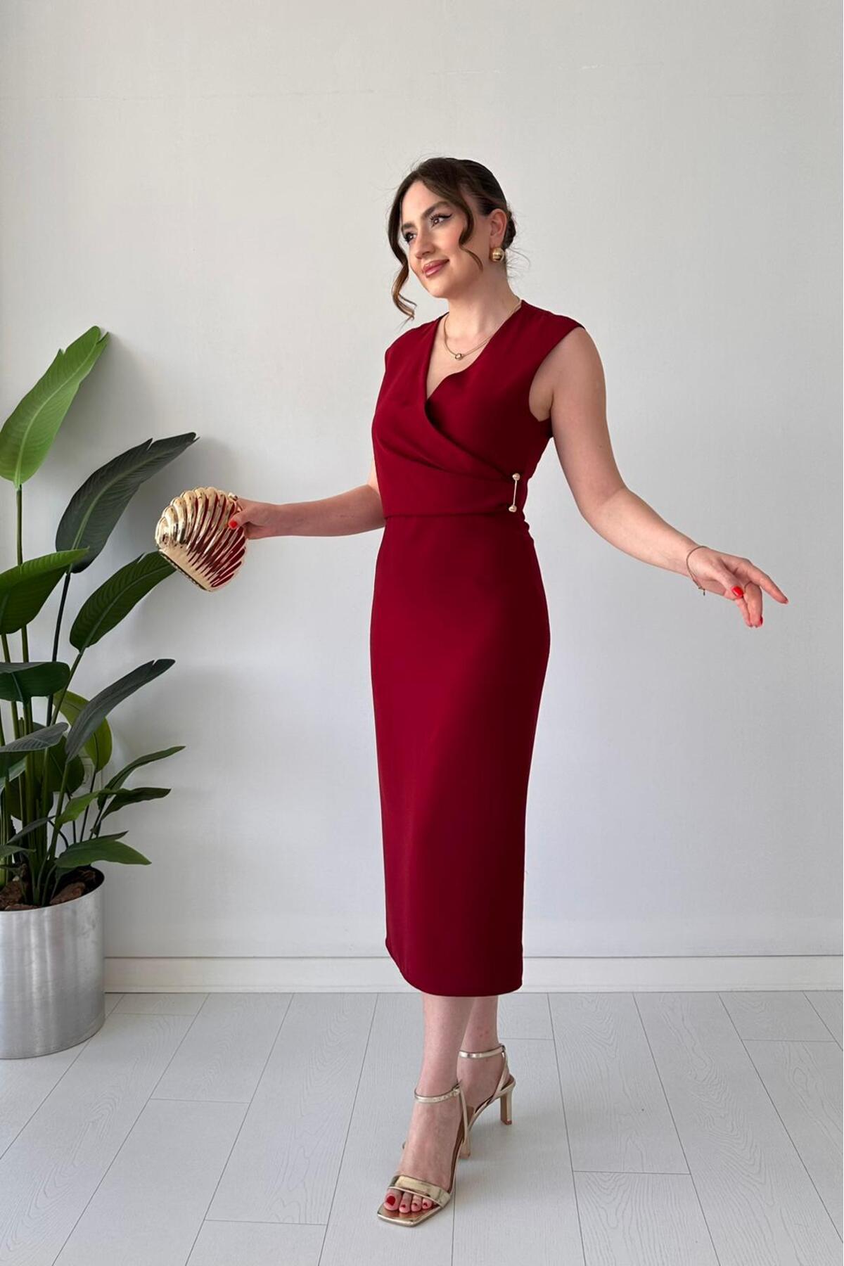 Çivi Tokalı Elbise Bordo Çivi Tokalı Elbise Bordo ccf3-16113 XL