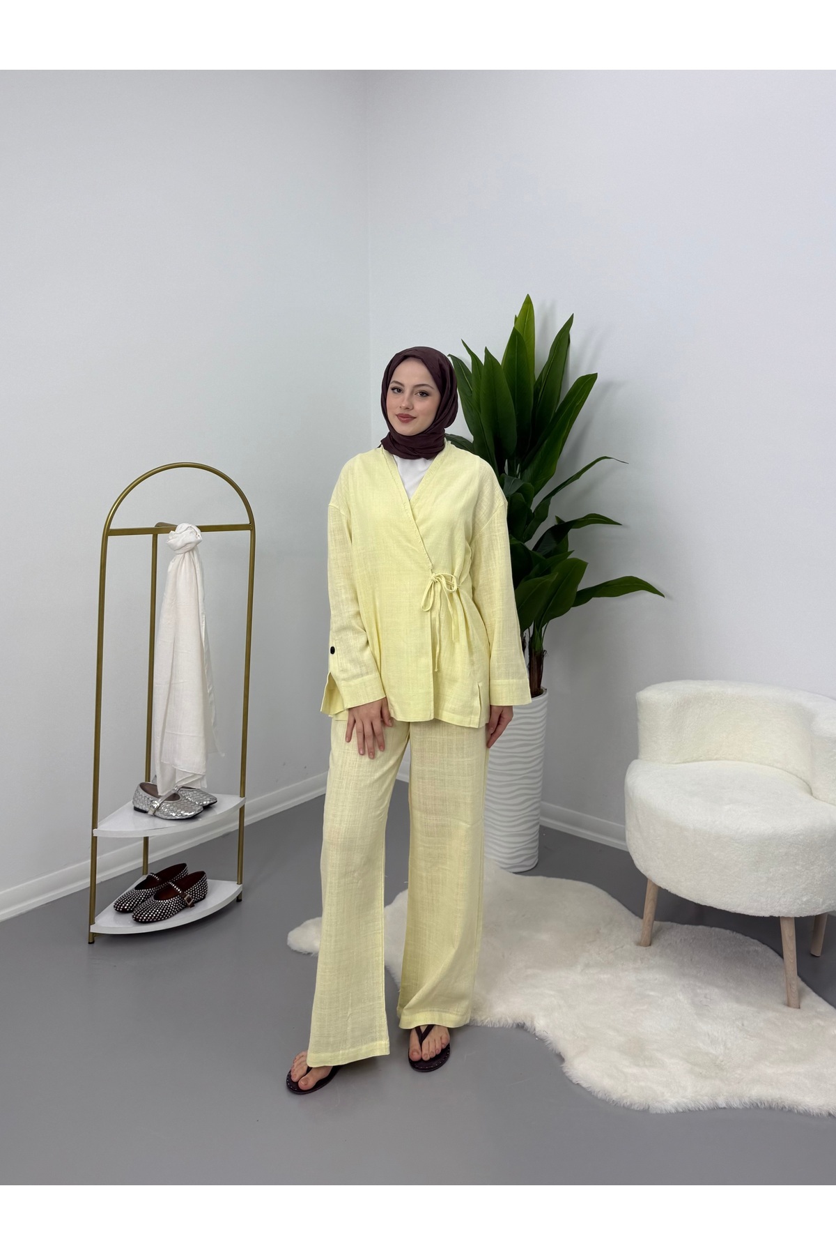 Yandan Bağlamalı Premium Keten Pantolonlu Takım Yandan Bağlamalı Premium Keten Pantolonlu Takım PLYNDBGTK29 XL
