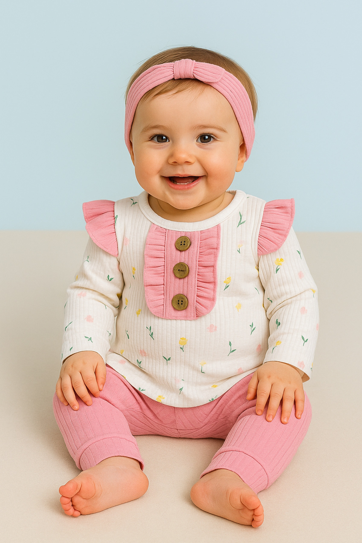 Kız Bebek Desenli İkili Takım Kız Bebek Desenli İkili Takım ÇCK003 9 Ay