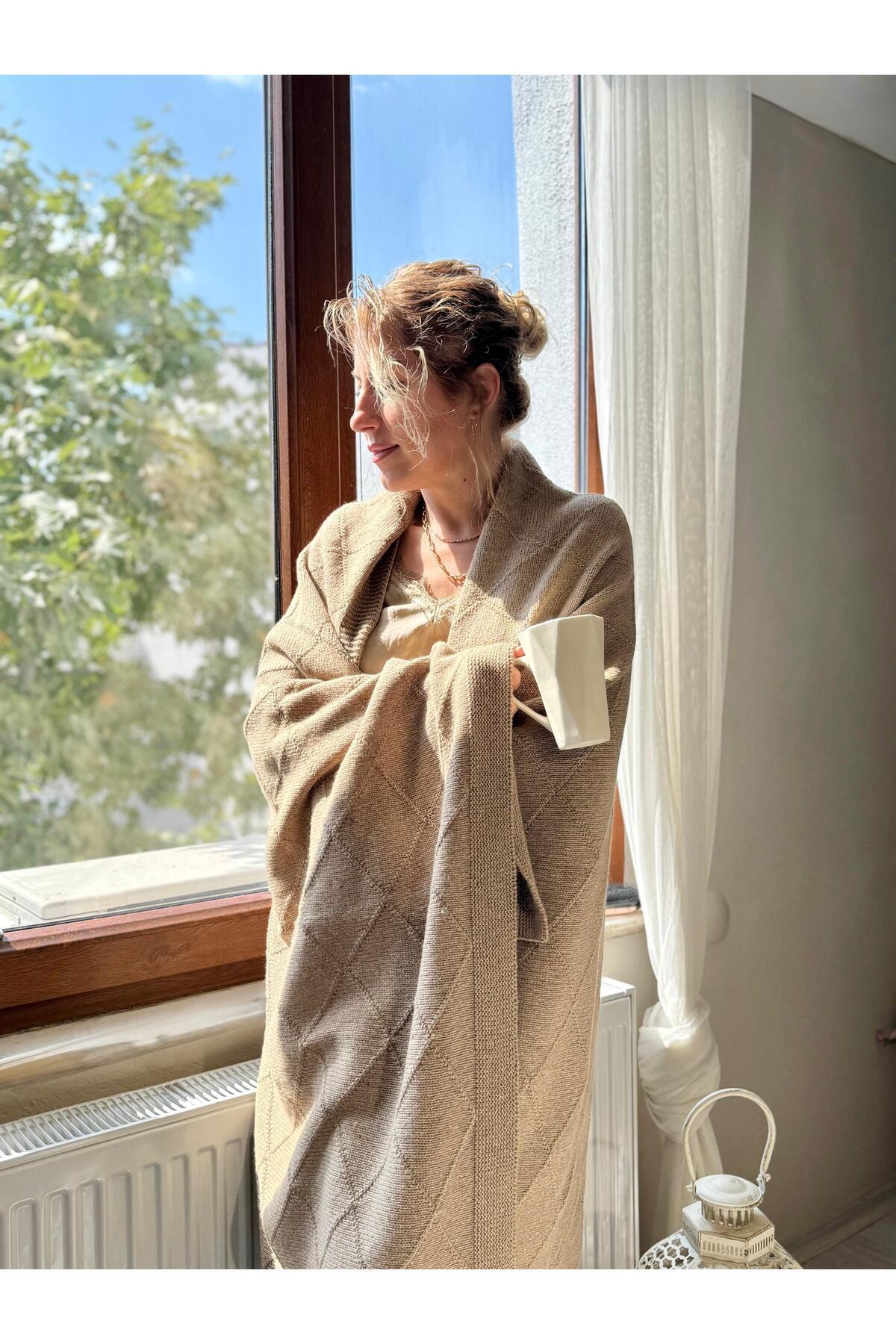 Yün Triko Tv Battaniyesi Baklava Desen-sarı Yün Triko Tv Battaniyesi Baklava Desen-sarı SRD2025-01 130 x 165