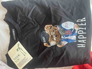 Bear Enjoy Ayıcık Desen Baskılı Siyah Kadın Oversize Pamuklu T-shirt Bear Enjoy Ayıcık Desen Baskılı Siyah Kadın Oversize Pamuklu T-shirt Vooya-Tshirt02 2XL