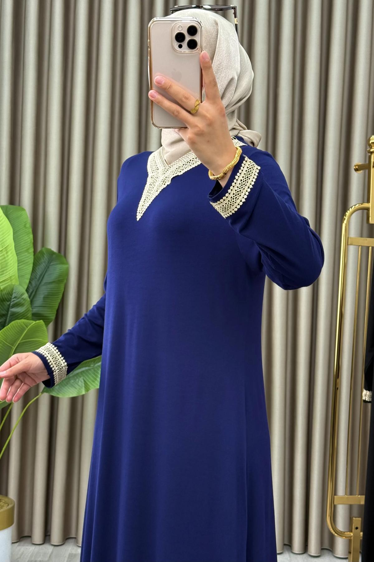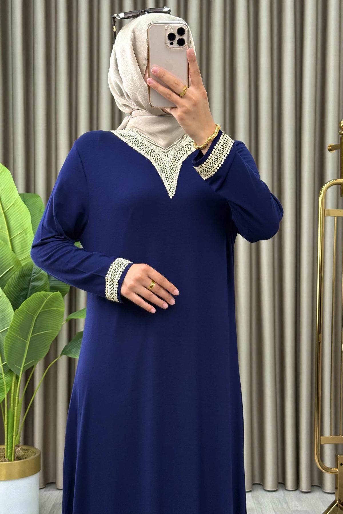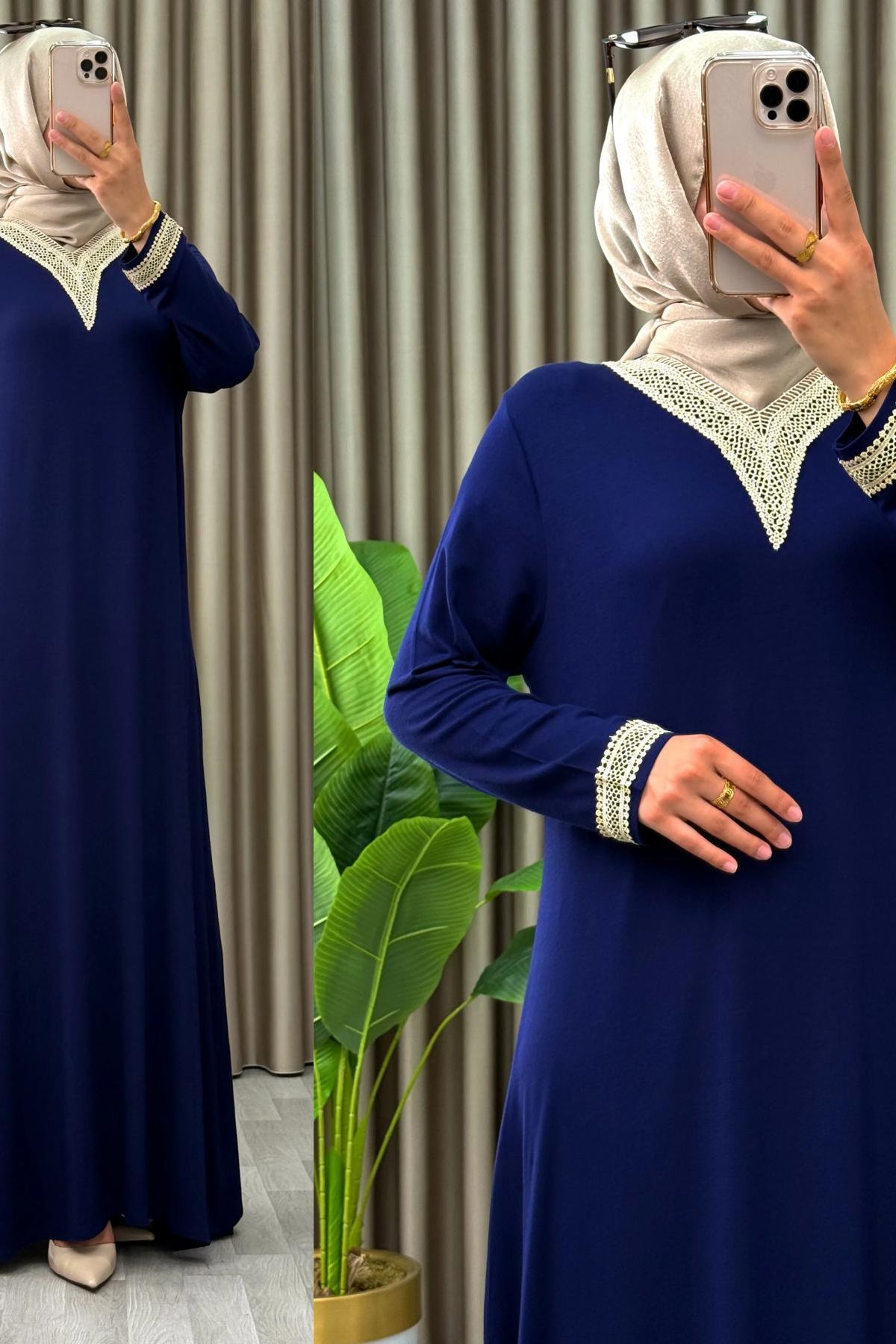 Boyun Detaylı Tesettür Gülse Elbise Boyun Detaylı Tesettür Gülse Elbise 78/6965 56